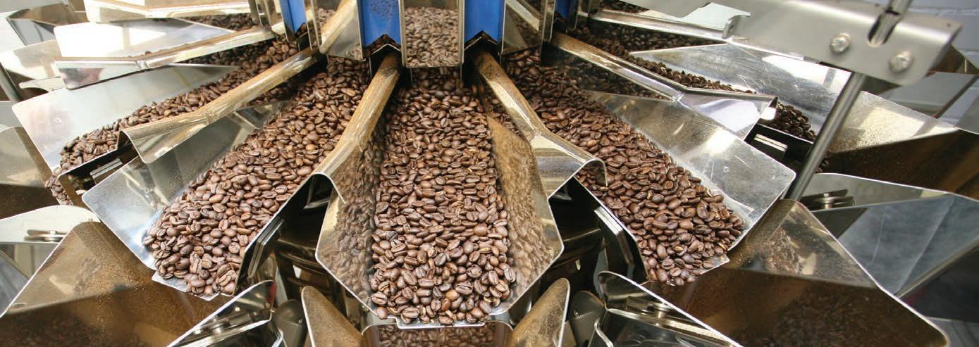With a strong focus on automation, solutions like Ishida check weighing equipment can verify package weight and detect missing components. In co ee applications, Ishida Multihead Weigher & Baggers are said to o er high-speed, precise weighing and bagging. Co ee is weighed by the multihead weigher selecting the best combination from the available 14 weigh hoppers on a circular machine. e computer selects normally three buckets that’ll get closest to the target weight.