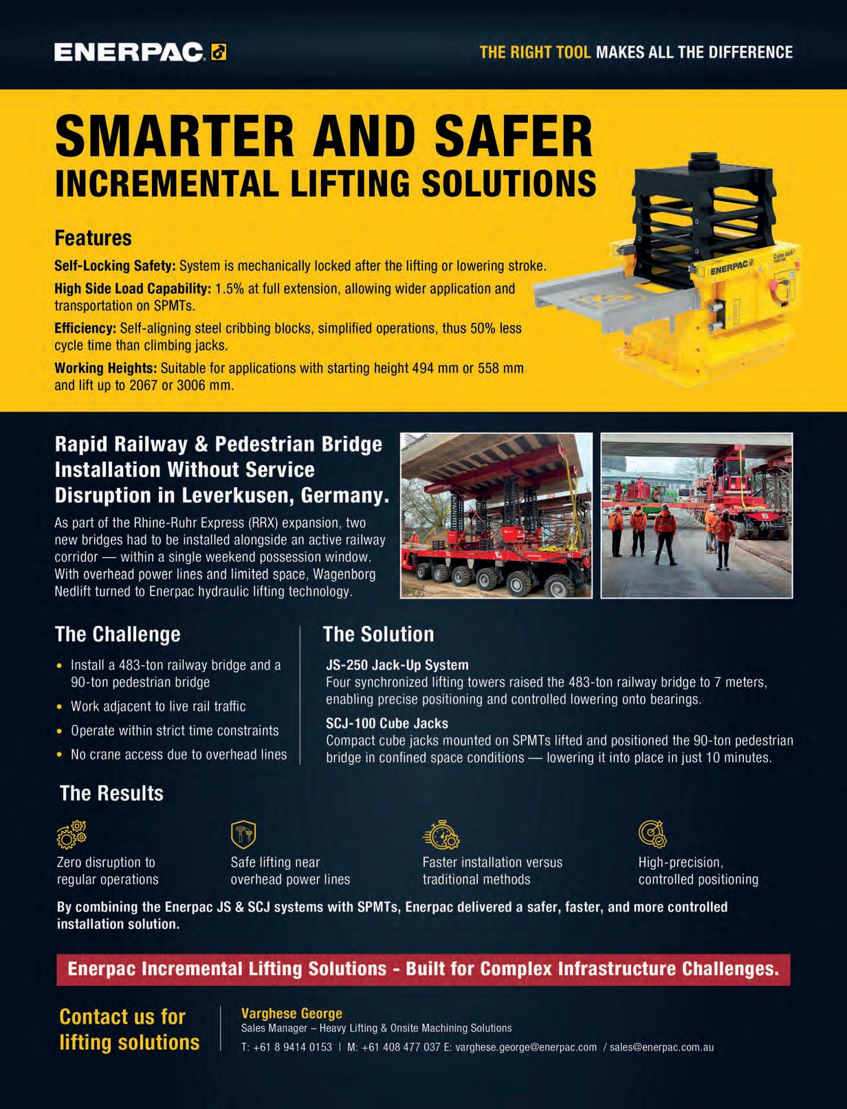 AT THE END OF 2025 MANY IN THE industry were shocked to learn that Brandon Hitch, Chief Executive Officer of The Crane Industry Council of Australia (CICA) had resigned. This shock was soon replaced with relief that his legacy will not be lost with Pat Cran being announced as his replacement. For many years, Pat has worked closely with Brandon, assisting with the roll out of important industry programs such as CraneSafe, CrewSafe and StartSafe and the industry will remain in good hands under his guidance. We wish Pat all the very best in his new role.