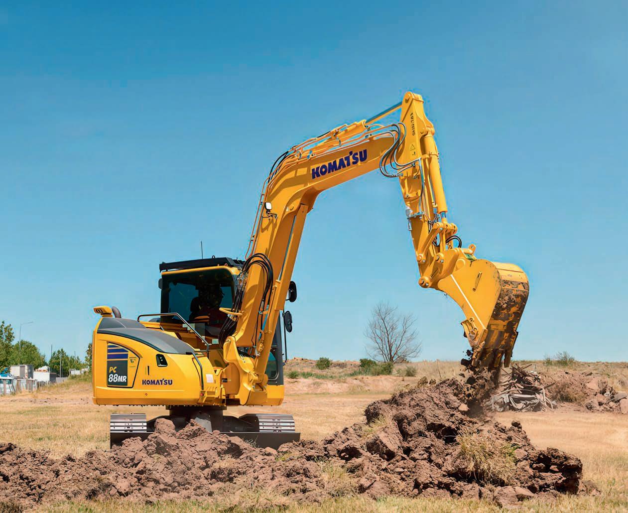 With an 8.7-tonne operating weight and a bucket capacity of 0.2 cubic metres, the PC88MR-11 is powered by a 65kW (51hp) engine. The short tail swing and swing boom make the PC88MR-11 ideal for tight spaces in residential areas and its compact size means it can be easily transported on equipment trailers from site to site.