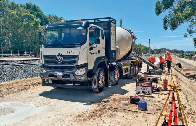 Following a successful six-month trial at a remote mine site near Port Hedland, the Foton electric concrete truck from Holcim Australia is currently delivering materials to the Byford Rail