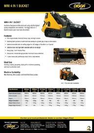 The smallest model in the skid steer range is UHI’s 1.6-tonne CDM303, offering a 25hp (18.4kW) Kubota engine, a 344kg load capacity and a 4-in-1 bucket.
