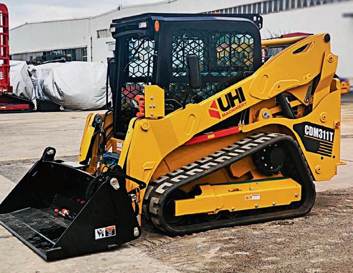The 3.5-tonne CDM312 is the largest skid steer loader offered by UHI, boasting an 85hp (62.5kW) Kubota engine, a 1.2-tonne rated operating load, and smooth dual-speed control.