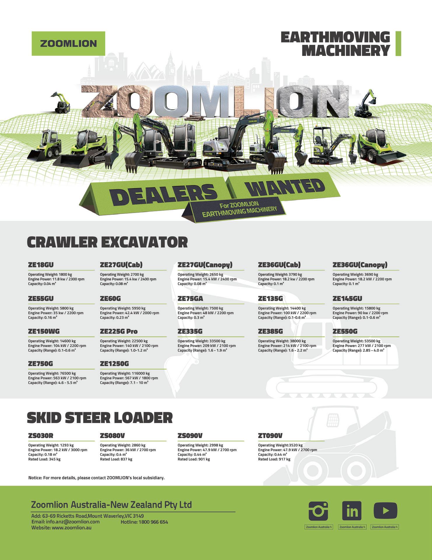 We travel to other parts of Australia to see the impact that other brands are making. In Queensland, we look at how the offset booms of Kobelco diggers are helping a civil contractor carry out tasks right up next to residential fences; we feature a luxury Sydney waterfront apartment block development, being built thanks to some Dieci compact powerhouses; we go to Adelaide where John Deere equipment is helping shape an expansive residential suburb; we talk to a LiuGong operator in Melbourne who has found the machines indispensable for quarry work; and we don’t forget Tasmania, where Merlo telehandlers are extending their reach physically and metaphorically.