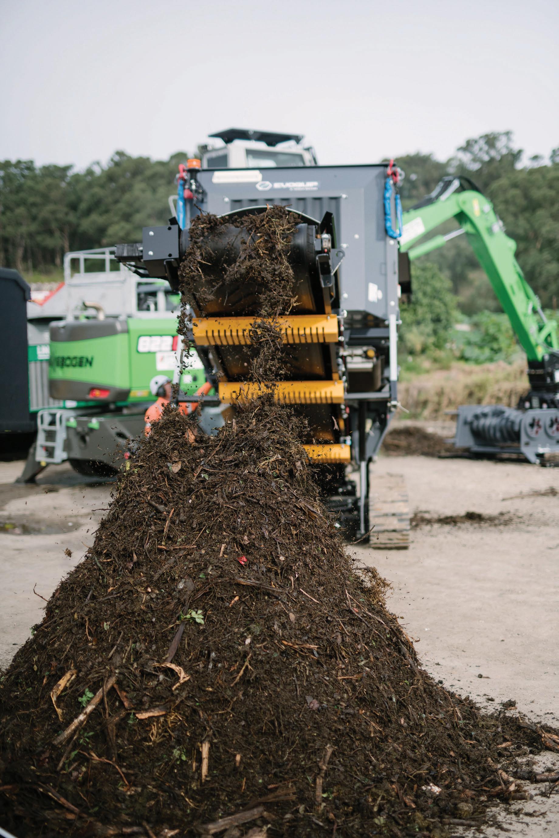 overband magnet in order to remove ferrous metals. The machine is also utilised to screen shredded and composted organic material, demonstrating its versatility and ability to adapt across multiple waste streams.