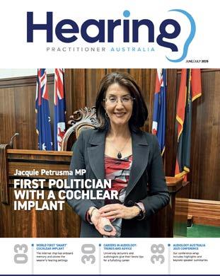 Hearing Practitioner Australia is the only independent business-tobusiness publication for the nation’s hearing industry, providing local, consistent and independent content relevant to audiologists, audiometrists, otolaryngologists/ENTs and other hearing professionals in Australia.
