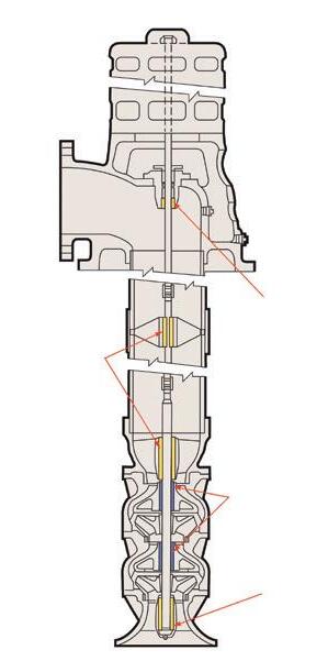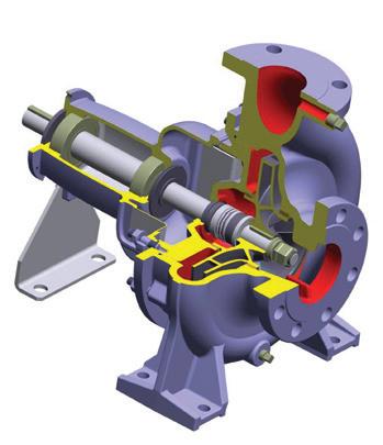 that reduces the pressure at the throat bush to atmospheric, and a packing ring or V-ring static seal to prevent leakage when the pump is stationary. A hydrodynamic seal absorbs about three to fve per cent additional power.
