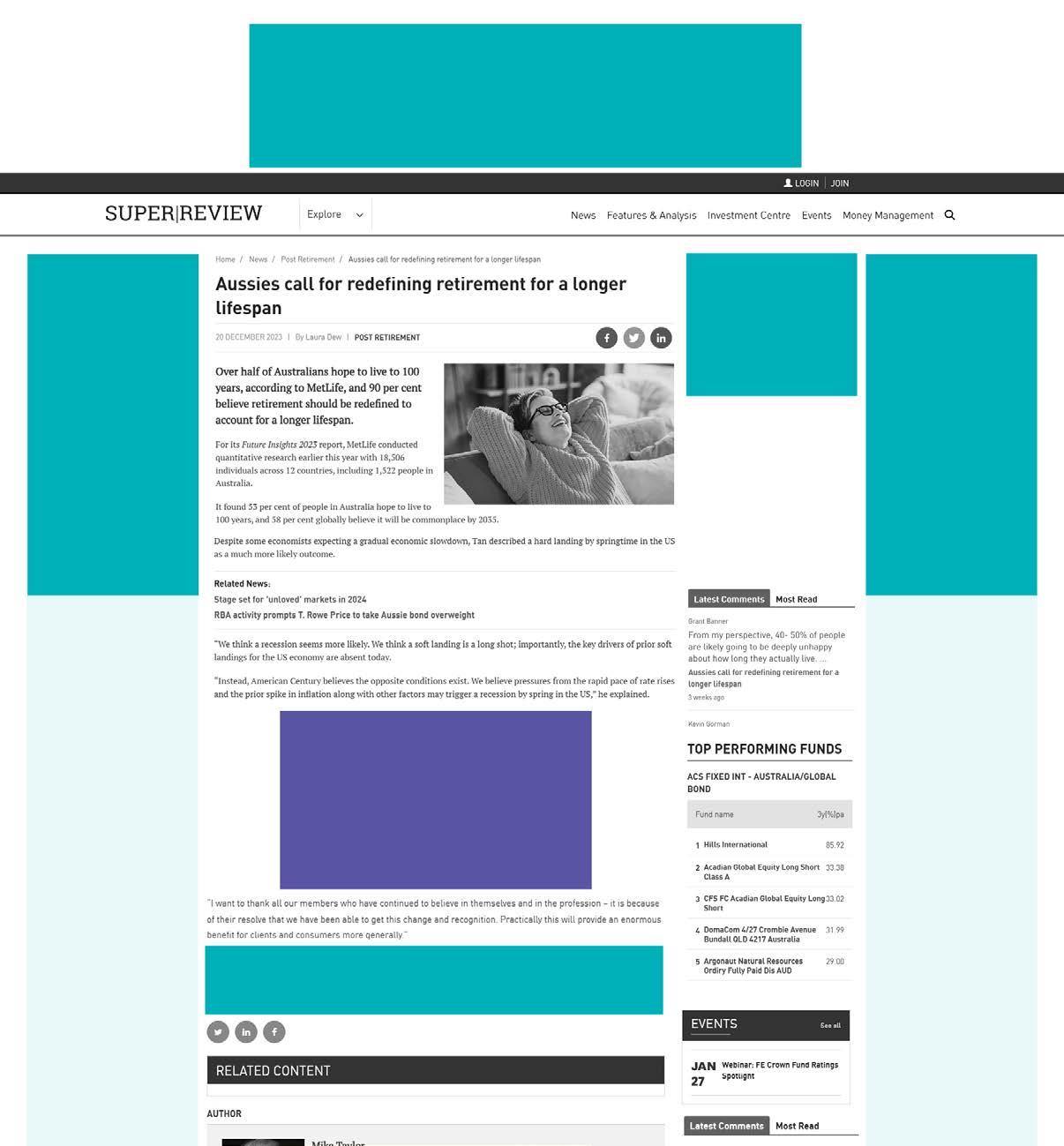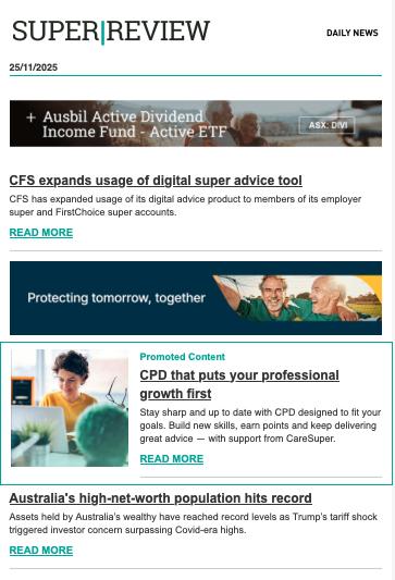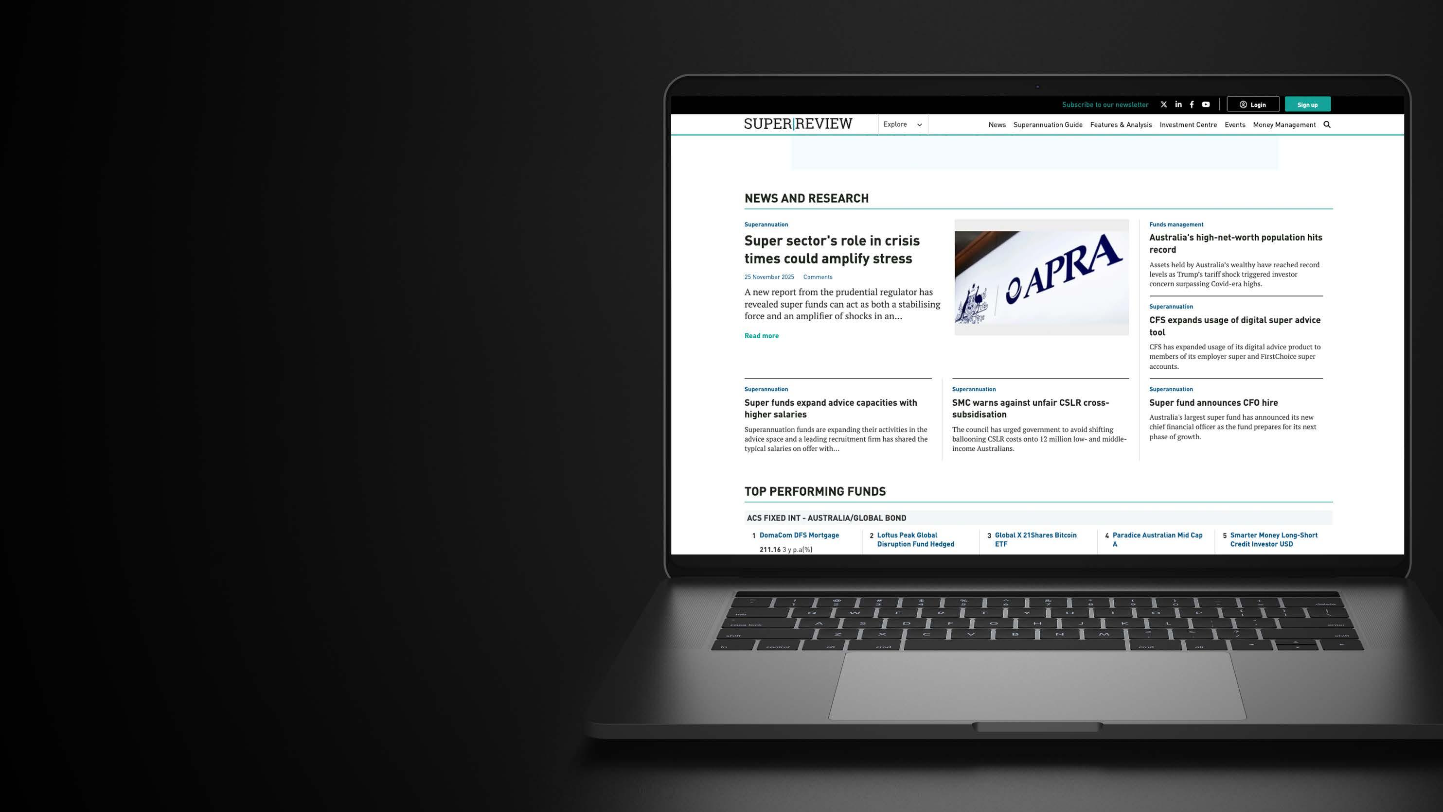 Super Review is widely read by leading industry practitioners including superannuation professionals, trustees and fund secretaries, fund managers, custodians, and asset consultants. The website is also supported by a daily newsletter, breaking news alerts, and various social media channels, making it the ideal choice for those looking to stay up-todate on industry developments.