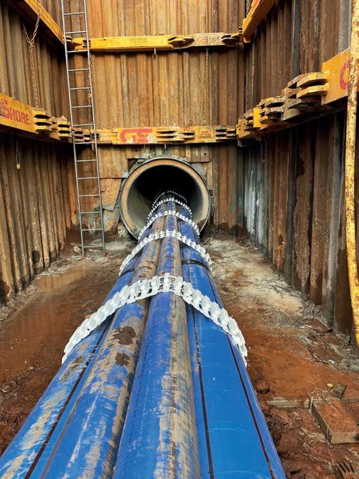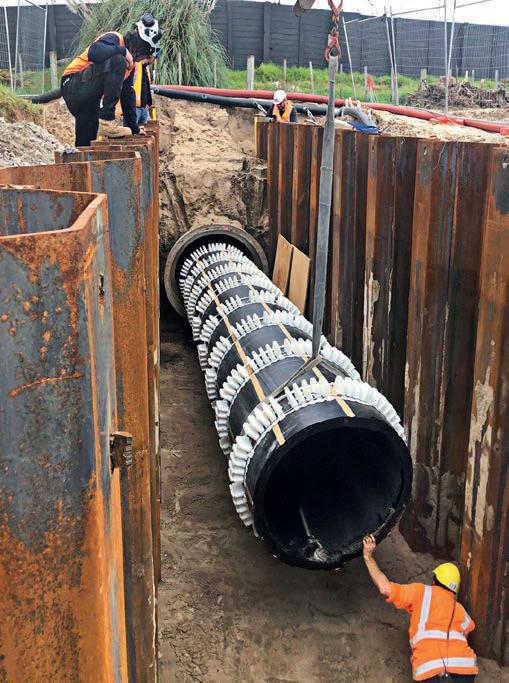 e ten existing inlet pipes are also being replaced to support future anticipated ows as new green eld developments in Adelaide’s north connect to SA Water’s sewer network, and two new pump stations now service the screens to reduce manual cleaning and improve safety and e ciency.