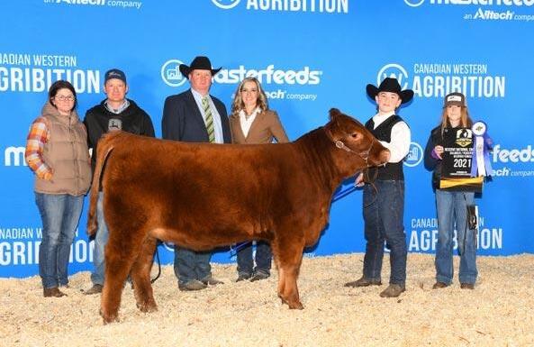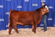 Look for this homozygous polled purebred red sale heifer to soon create her own following! She is supported by a young 2 year old Dam, out of one of our favorite cow families and exhibited here at the 2022 Canadian Western Agribition for the first time. Her sire, our new herd sire OSF Brett Favre 1G, is proving his worth as we are excited to retain this fall, 11 of his daughters!