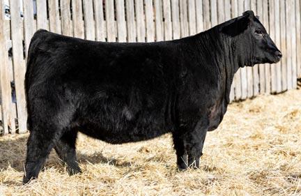 Another ProStar female cut from the same cloth. Easy fleshing, strong topped, big middle with a true “Angus” character head and lots of hair. The consistency of these types of females sired by ProStar is worth its weight in gold. Her dam can also brag of consistency with ratios at 3 BR @103, 3 WR @102, 2 Yr @ 111 and out of Everelda W3, a foundation Pine Coulee donor female.
