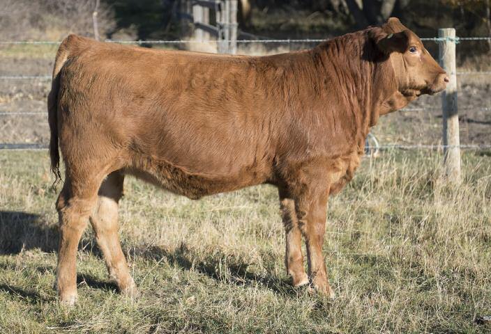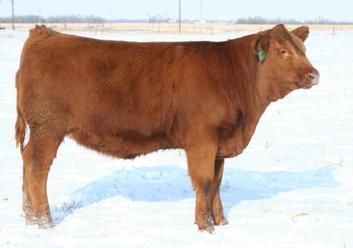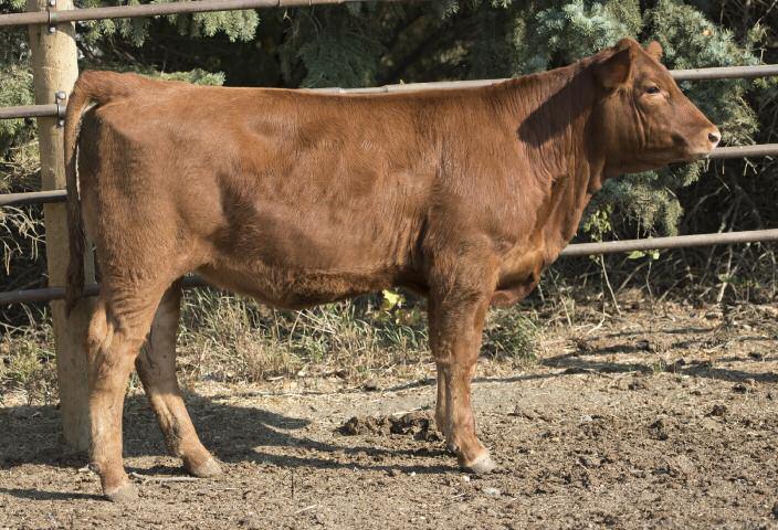 This will be the first of the Armadaeus females we have released for public appraisal This young lady will pattern ver y similar to her mother A moderate, stout made, cherr y red brood cow in the making Her mother has landed multiple herd sires including a son to Jonus cattle in our inaugural bull sale We believe that with the combination of pedigree's in this young ladies por tfolio, including the great SLC Reba cow, she will be another no miss kind of female. She sells bred to our outcross bull