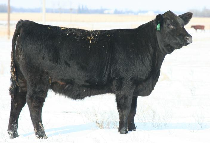 When Ian was out to select for this year's sale I told him he wasn't getting any direct Mighty Dandy daughters but he twisted my arm into this one. She is a direct daughter from the Imagine cow family that has done some awesome things for us already She has 2 daughters working for us here and a full sister that calls Hurlbur t Livestock home now We feel this female is exactly what we are tr ying to accomplish with our replacement program She is soft made, great footed, sow bellied and big hipped She's a female that carries herself ver y well We feel so strongly about this female she will be showed this fall at Agribition. She sells bred up early to our outcross bull JCGR Gun Fighter 150B