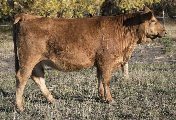 Winnie is a dark red stylish female who will be sure to catch your eye sale day She comes with a calm trusting temperament The Winnie family has produced offspring that have rose to the top of the pen year after year Her dam 32A is sired by the great SLC Outback 142x who has stamped his daughters with a sound structure along with easy doing and easy moving traits. We are confident that this female will carr y on these traits.