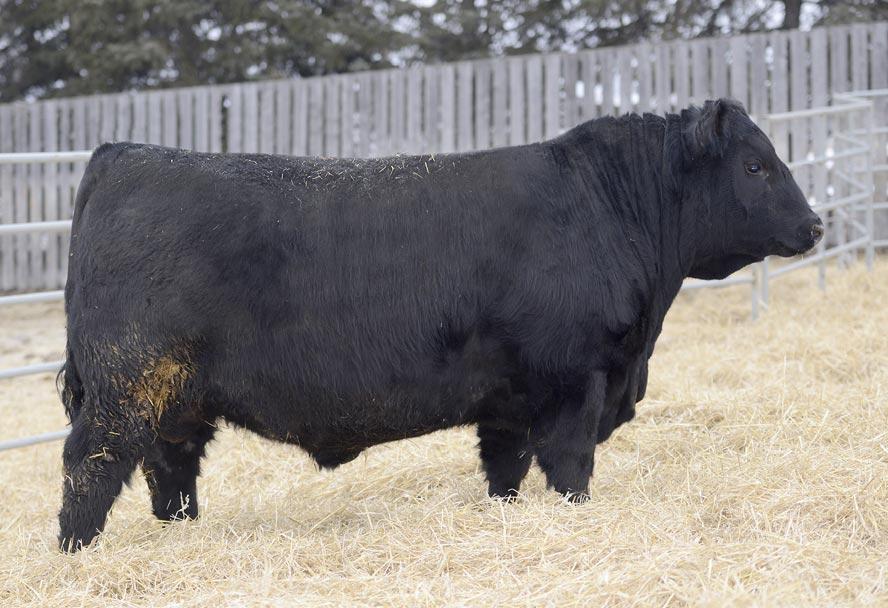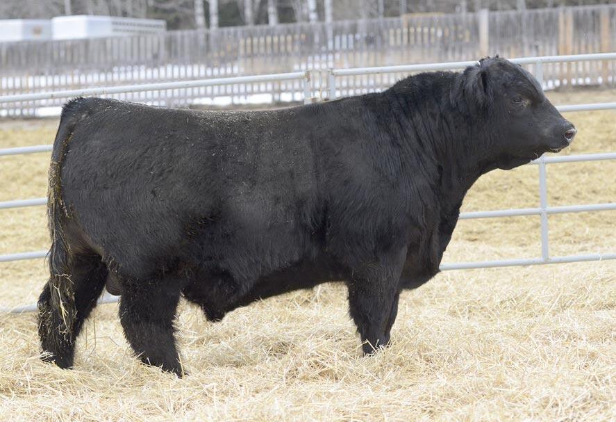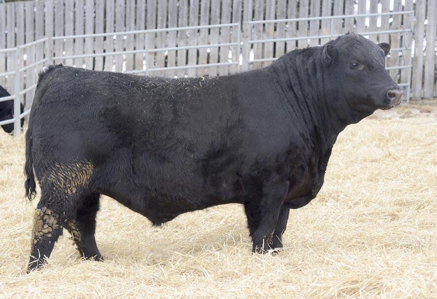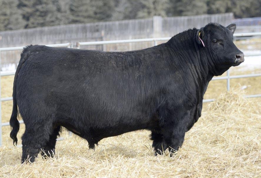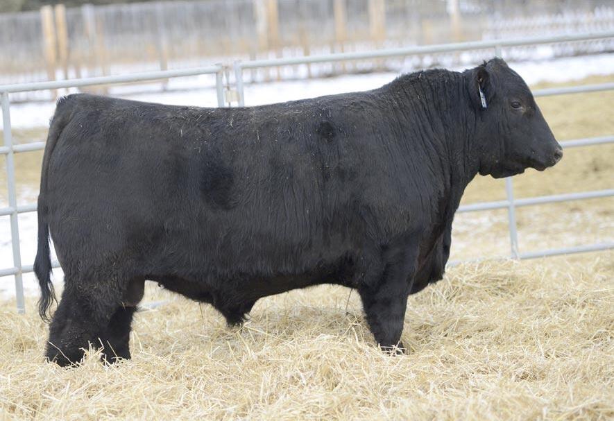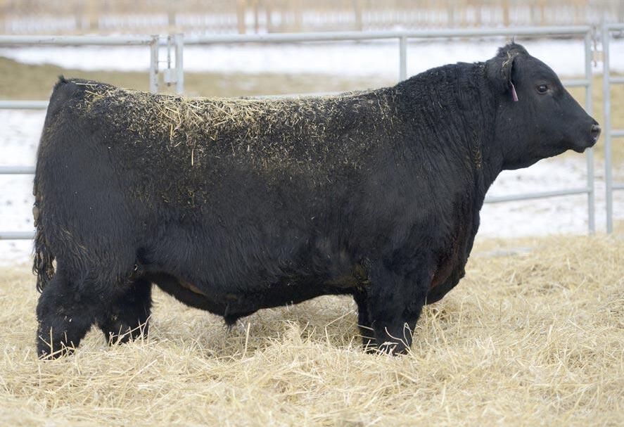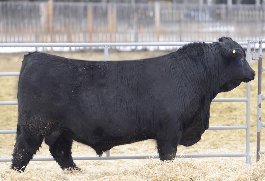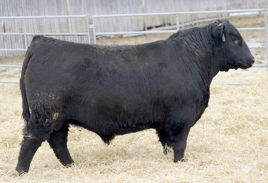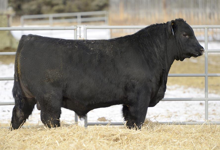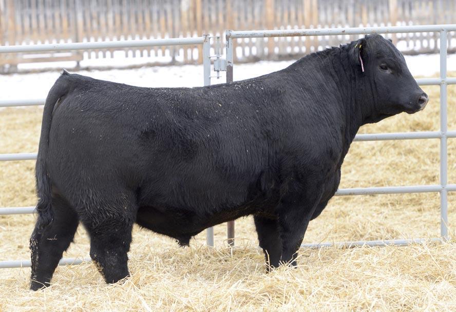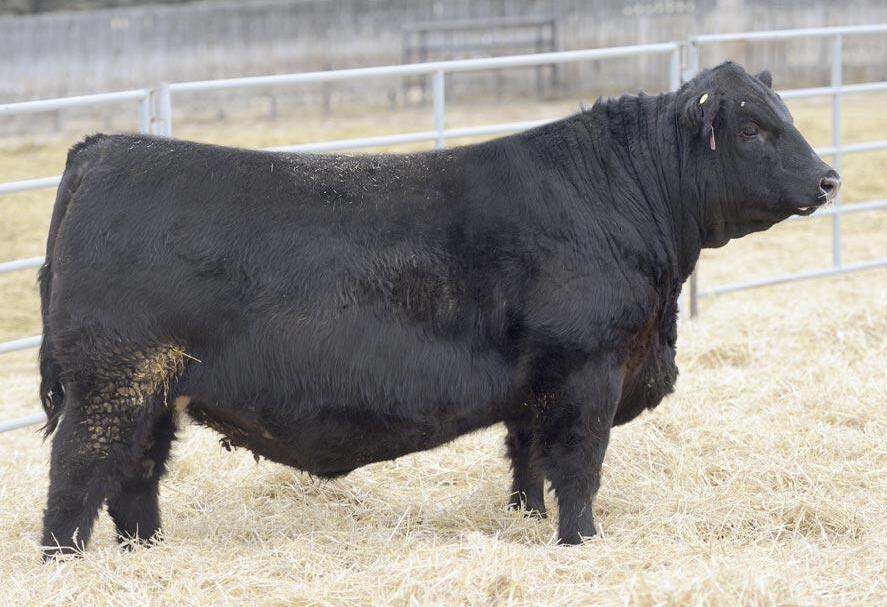 This is an exceptional bull on paper and even more impressive in terms of his phenotype. He is an outcross option to most of the popular Angus pedigrees right now, and will move your herd in the right direction. Wide based, long spined, big bodied, sound made, with excellent feet and legs. Perfect bull to put the punch and power back into your Angus cattle. His outcross pedigree, phenomenal performance and powerful yet traditional Angus phenotype have made him one of the most popular bulls in the industry. A breed changer from a growth performance and body mass standpoint.