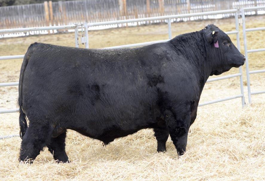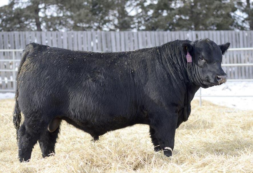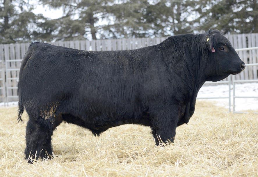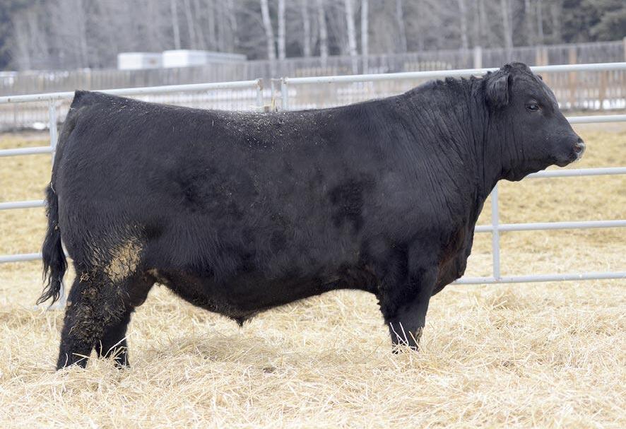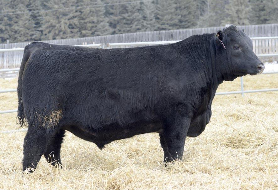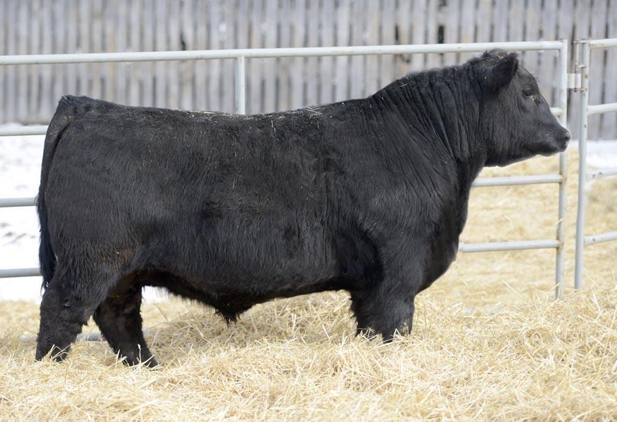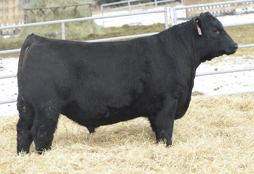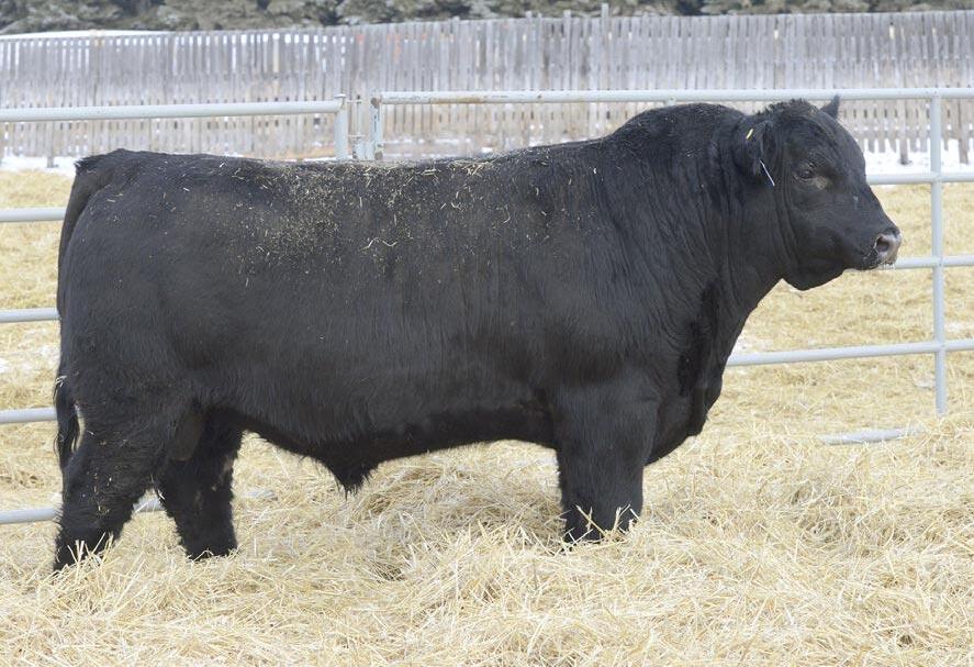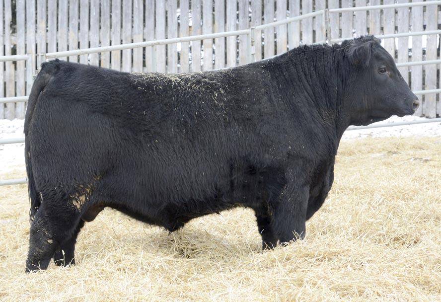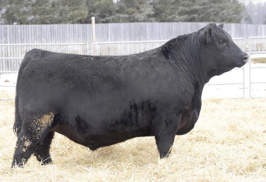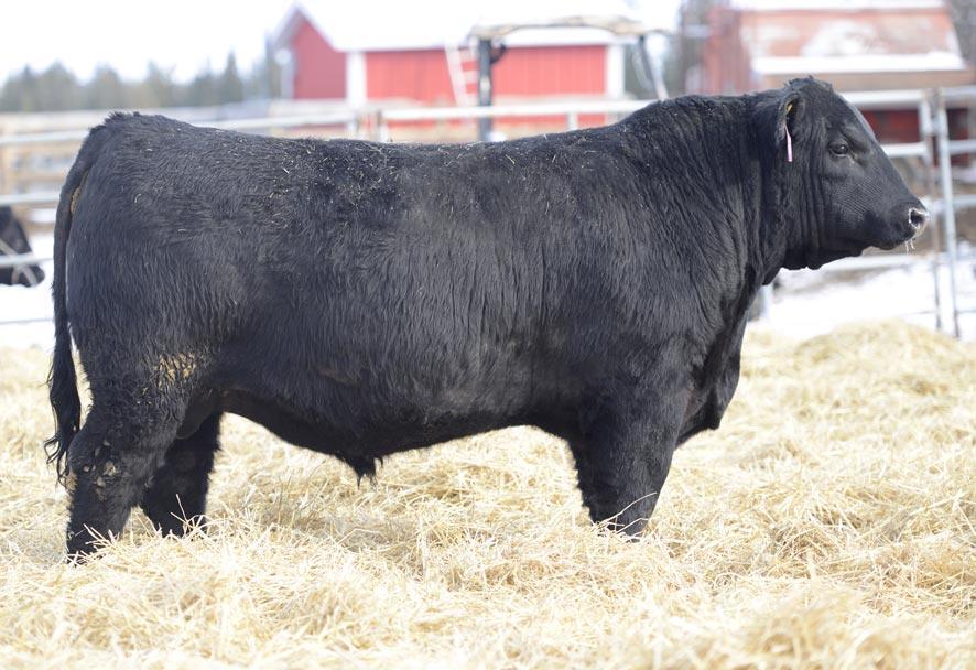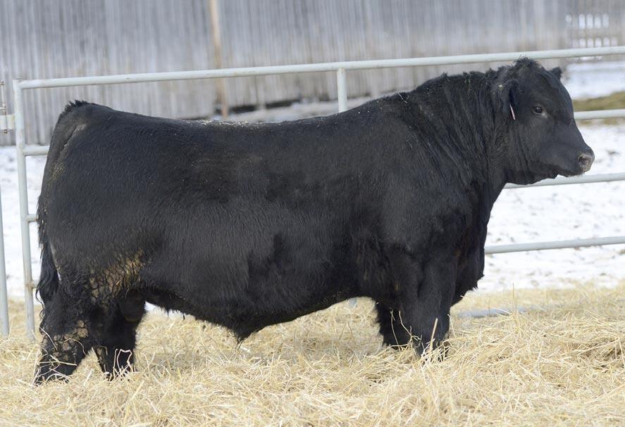 This is an exceptional bull on paper and even more impressive in terms of his phenotype. He is an outcross option to most of the popular Angus pedigrees right now, and will move your herd in the right direction. Wide based, long spined, big bodied, sound made, with excellent feet and legs. Perfect bull to put the punch and power back into your Angus cattle. His outcross pedigree, phenomenal performance and powerful yet traditional Angus phenotype have made him one of the most popular bulls in the industry. A breed changer from a growth performance and body mass standpoint.