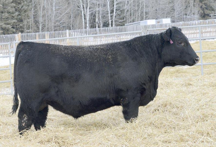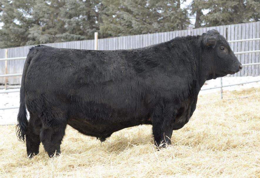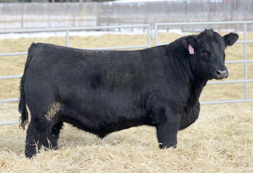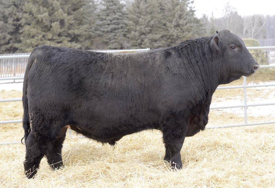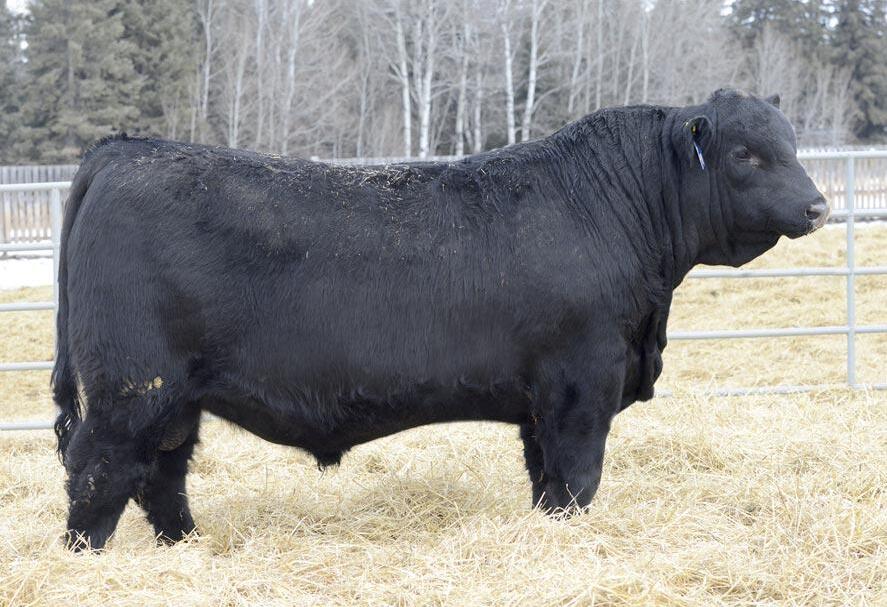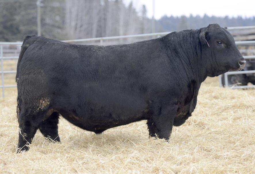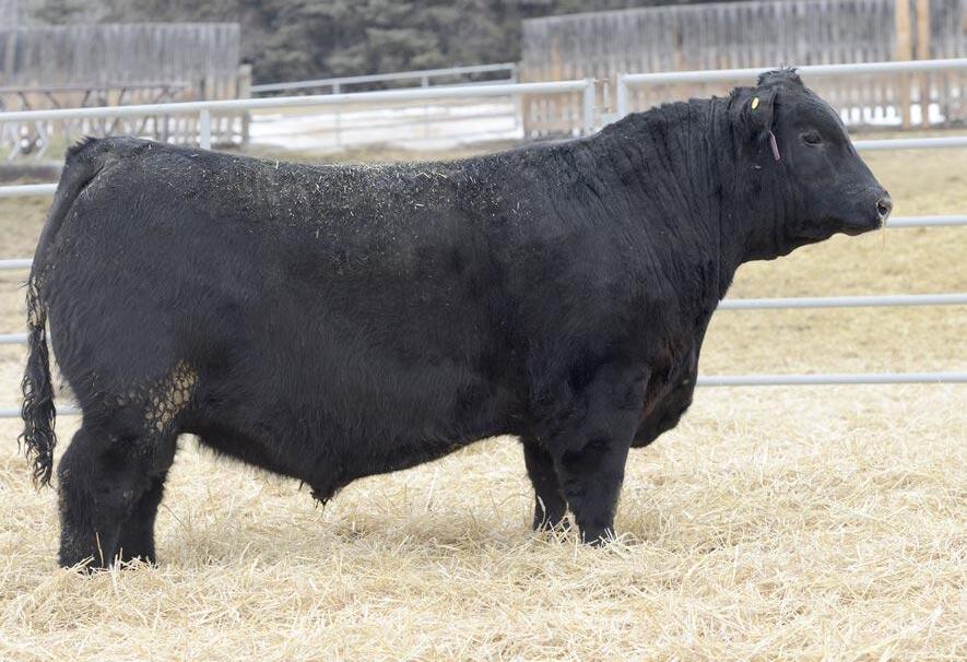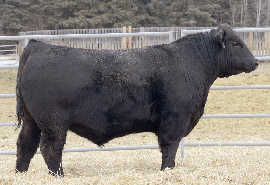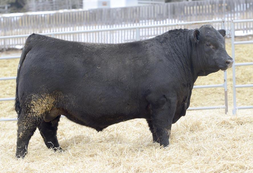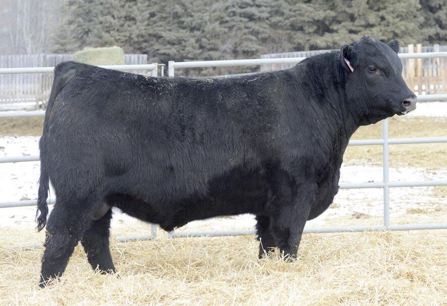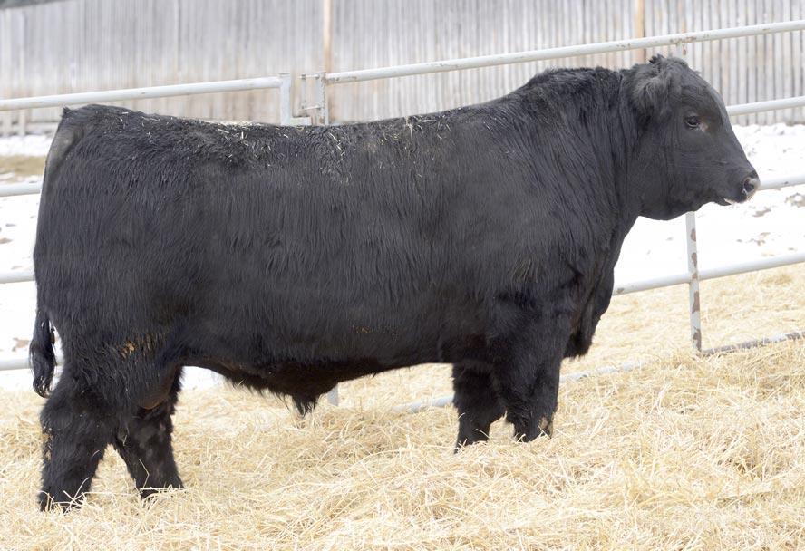 This is an exceptional bull on paper and even more impressive in terms of his phenotype. He is an outcross option to most of the popular Angus pedigrees right now, and will move your herd in the right direction. Wide based, long spined, big bodied, sound made, with excellent feet and legs. Perfect bull to put the punch and power back into your Angus cattle. His outcross pedigree, phenomenal performance and powerful yet traditional Angus phenotype have made him one of the most popular bulls in the industry. A breed changer from a growth performance and body mass standpoint.