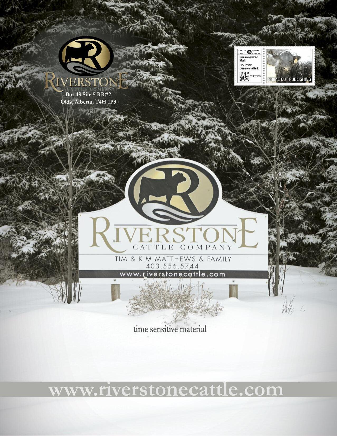 I would like to welcome you all to the 2018 Riverstone Bull Sale. To say that 2018 has star ted off challenging would be an understatement! The extreme cold that we have faced through the past two months we have definitely been keeping ever yone on their toes With the shor tage of straw in some places combined with these frigid temperatures I am sure this will have an effect on ever yones current herdsire batter y and good herdsire prospects will be in demand
