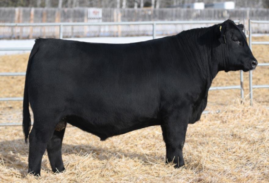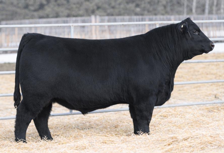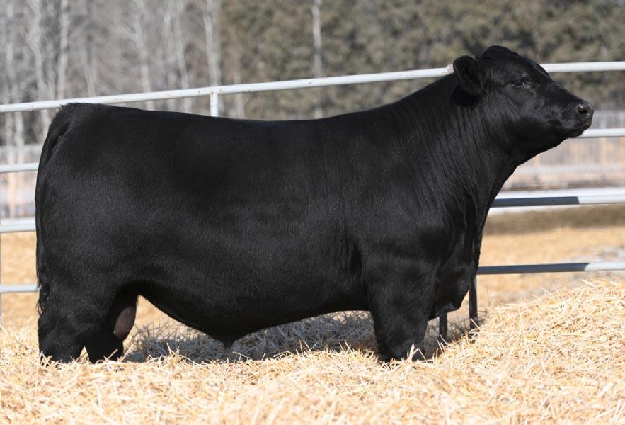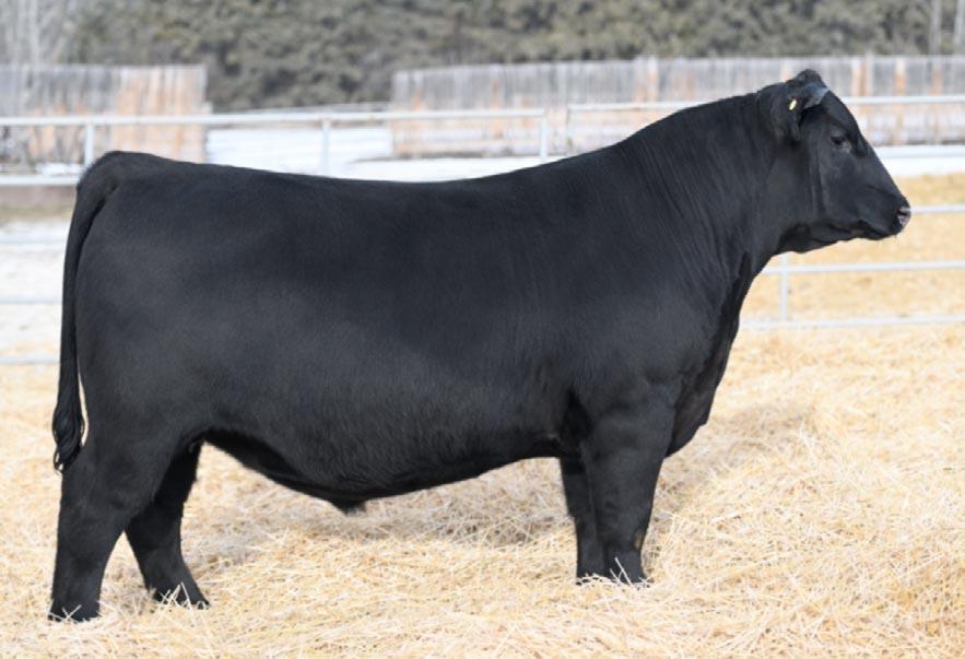 Splash was the high selling bull in our 2023 Bull Sale. He was definitely a crowd favorite in the pen that year. We loved the bull so much we drew semen on him before he sold to Lakeroad Angus from Worsley, AB. He is a bull that we used on both heifers and cows.