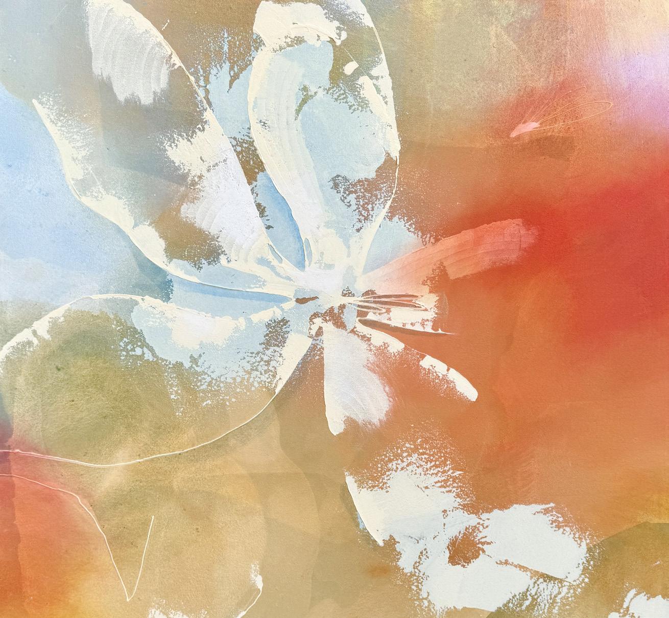 This exhibition is inspired by the endless beauty of nature, from the texture of a seashell and the patterns of clouds to the shifting hues of the sky and sea. At its heart, this collection draws influence from the gentle beauty found in the garden, especially the delicate forms and colors of flowers. The work reflects a deep appreciation for the small details that surround us and transforms them into expressive abstract compositions. Each piece is built with layered acrylic paint to create depth and movement. Sand-like textures and subtle collage materials add a tactile, organic quality to the surface. Bold tones and rough textures bring energy and vibrancy, balanced by soft blends and washes that create a sense of calm.