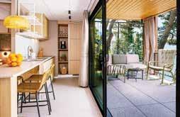 Na panoramskem rtu med kampom in zahodno plažo si lahko izberete mobilno hiško po svoji meri – z notranjo površino 24–39 m2 so primerne za 2 do 5 oseb, v tistih s 3 spalnicami pa vas bo udobno bivalo od 6 do 7. Dve sta prilagojeni invalidom, vse pa so klimatizirane in opremljene z različno velikimi terasami. Večina je z dodatnim ogrevanjem primerna tudi za celoletno uporabo. Povsod ste dobrodošli s psom, saj so v vodstvu kampa iskreni ljubitelji živali.