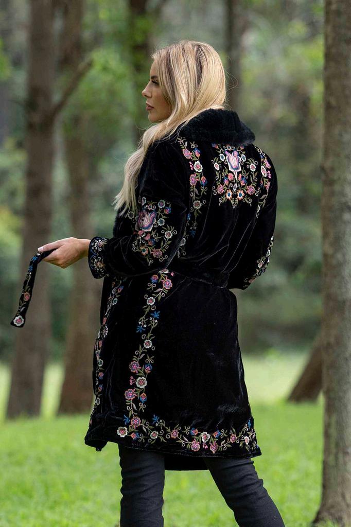 CIENNA - DANICA BLACK VELVET EMBROIDERED COAT - $36995