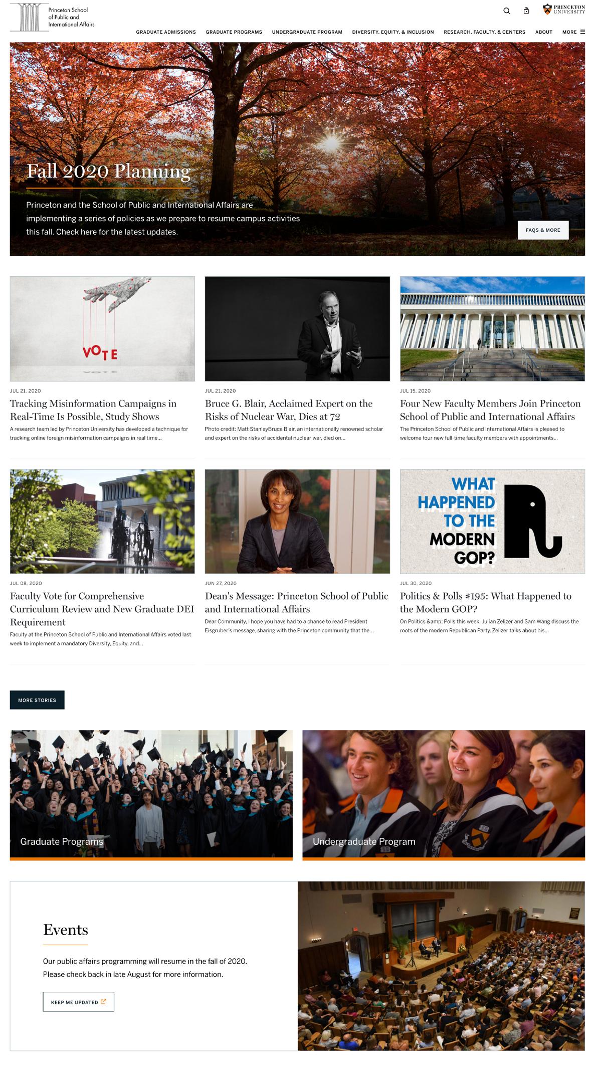 The School redesigned its website this year, launching a modern and accessible site in July 2020. The redesigned website features a new information architecture, visual framework, and content strategy that better speaks to the School’s core audiences and values.