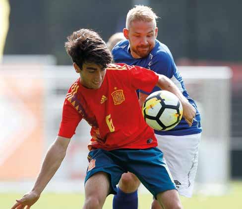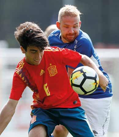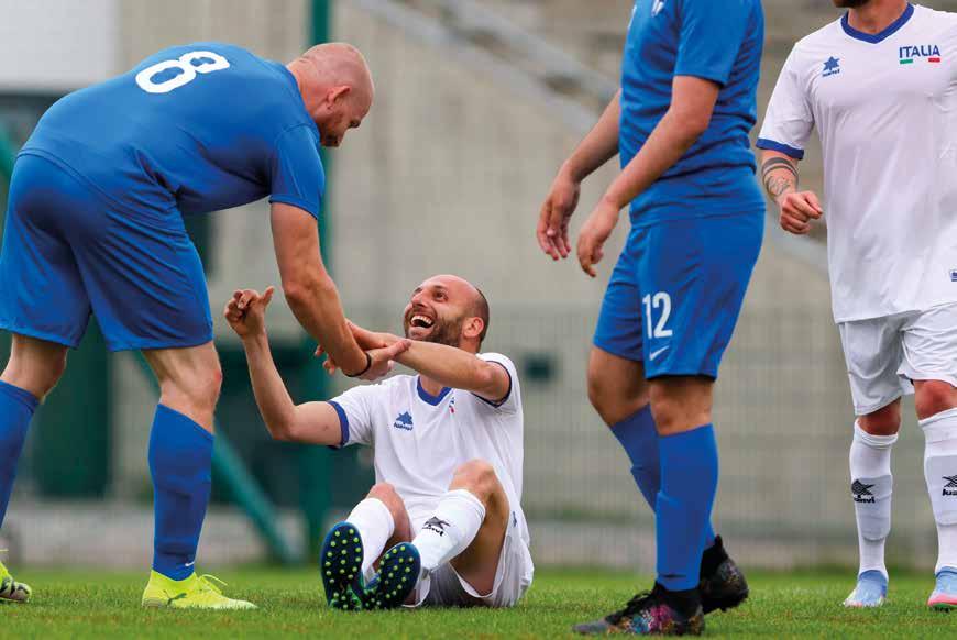 Mikael Jukarainen tunnetaan kansainvälisillä CP-jalkapallokentillä erinomaisesta urheiluhengestään. Huumori ja toisten auttaminen ulottuu myös vastustajiin pelin ollessa tauolla. Kuva: Mira Lönnqvist