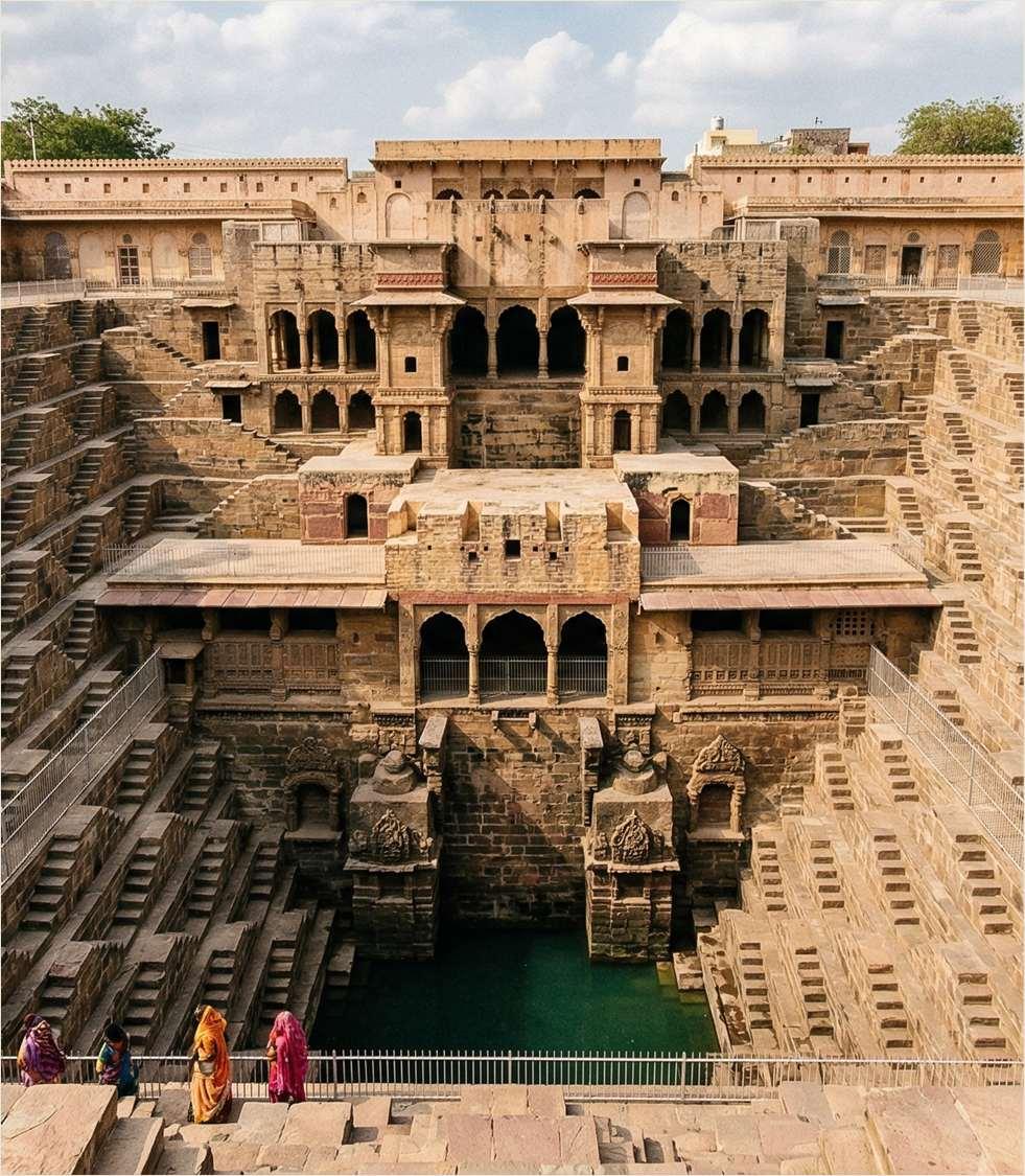 ChandBaorioffersa visuallypowerfulstop betweenJaipurandAgra, addingheritageinterest, strongphotography appeal,andgreatervariety toclassicGoldenTriangle journeys.