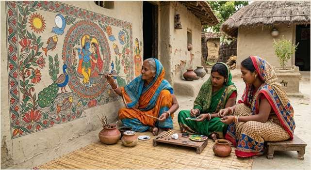 ExperienceMadhubani,Bihar’svibrantfolk art.VisitJitwarpurvillagetoobserveartisans inlocalhomes,joinpracticalworkshops,and purchaseauthenticartworkdirectly, enhancingregionalitinerarieswith meaningfulculturalexchange.