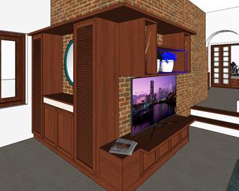 Furniture design Family room design with a bookshelfopeninginto a terrace Custom made furniture with upper bed unit, extendabledaybed, ladder,wardrobe, study tableand monkey bar attachment 2 sided livingroom furniture with key storage and statue on one side and closed cutlery unit behind Custom made familyroom tv unit, pooja room design and a combined entrance storage, shoe rack and tv shelf unit Family room tv unit Entrancestorage, rack and tv unit Pooja room unit
