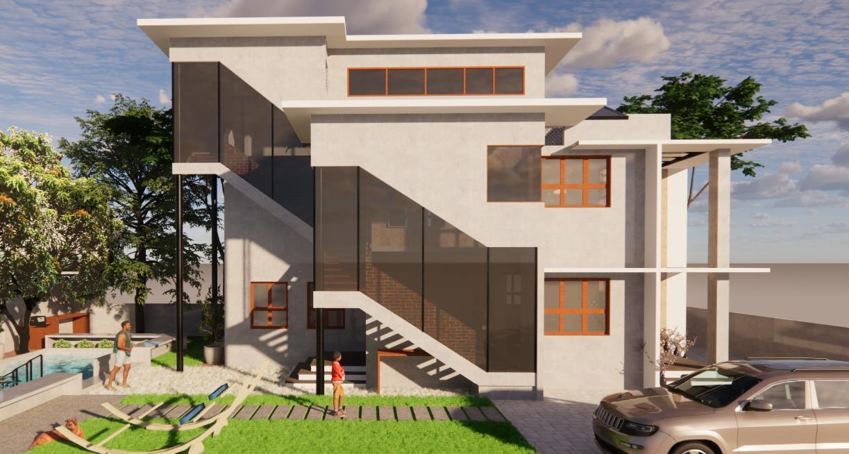 2 sides of exterior has glass mounted staircase, which lets in lots of natural light. Carefully places air filters, remove the heat that rises indoors due to glass façade.