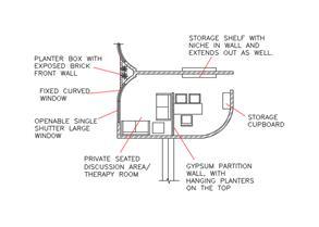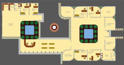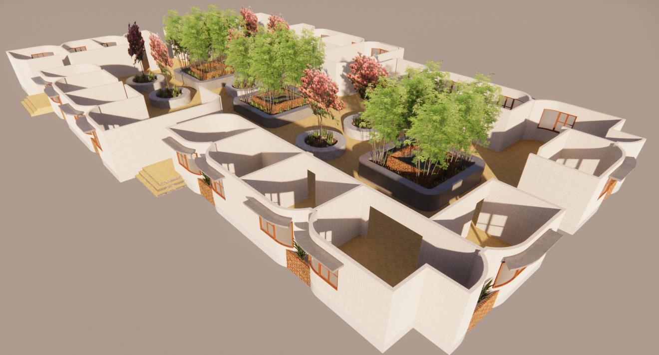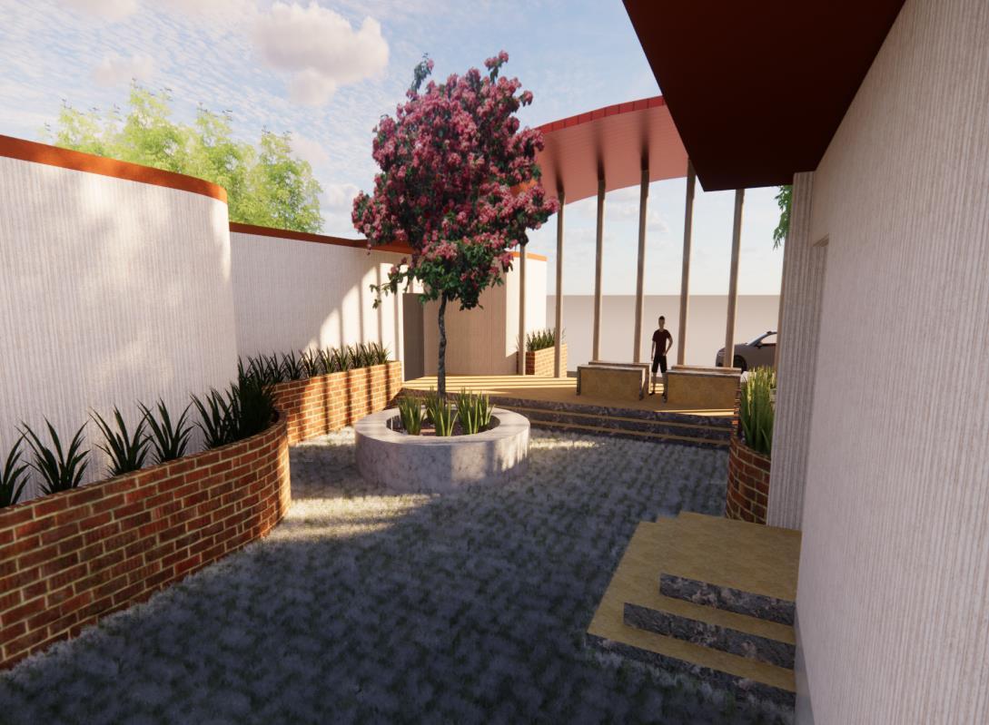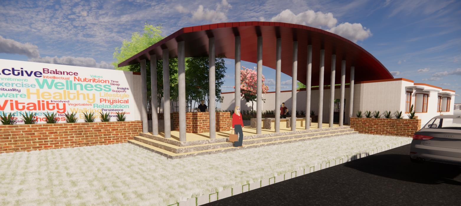 Design of a rehabilitation retreat built in Bangalore on a large green site next to a naturally existing lake. users on the level of unwinding and relaxing. The whole concept of the spaces is that of semi open ness and to accept the changes they need to go through