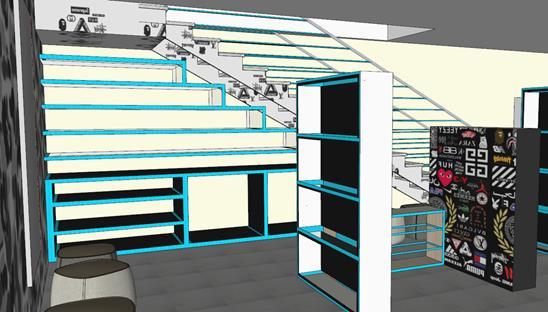 fashion merchandise or in the trend gadgets, toys and accessories. The goal being to make a flashy statement to people who cross the store and to be as inviting as possible for viewing the indoor merchandise. The idea behind the glass façade being that of window shopping which is an ideal design concept especially in a student town.