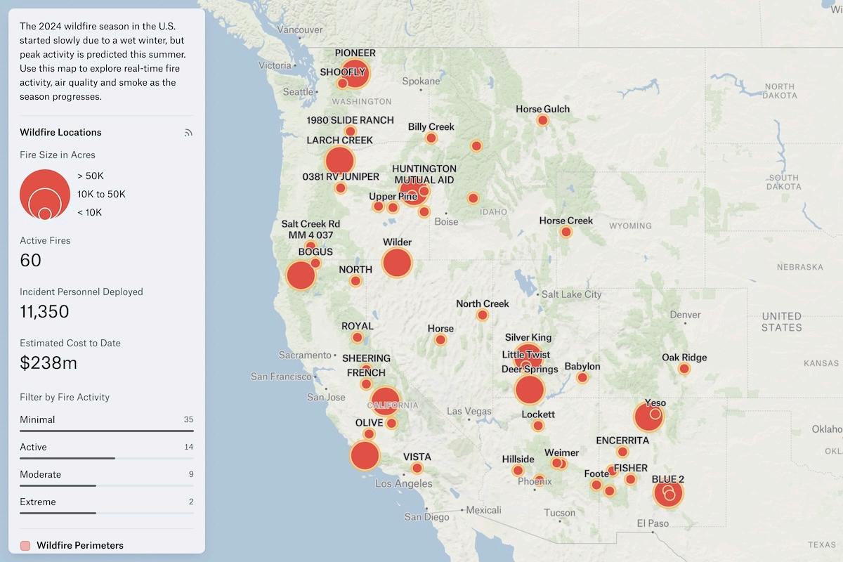 Thelivewildfireandsmokemapprovidesrealtimeinformationonthelocationandintensity ofwildfires,allowingindividualsand communitiestostayinformedaboutthe evolvingsituationandpotentialrisks.