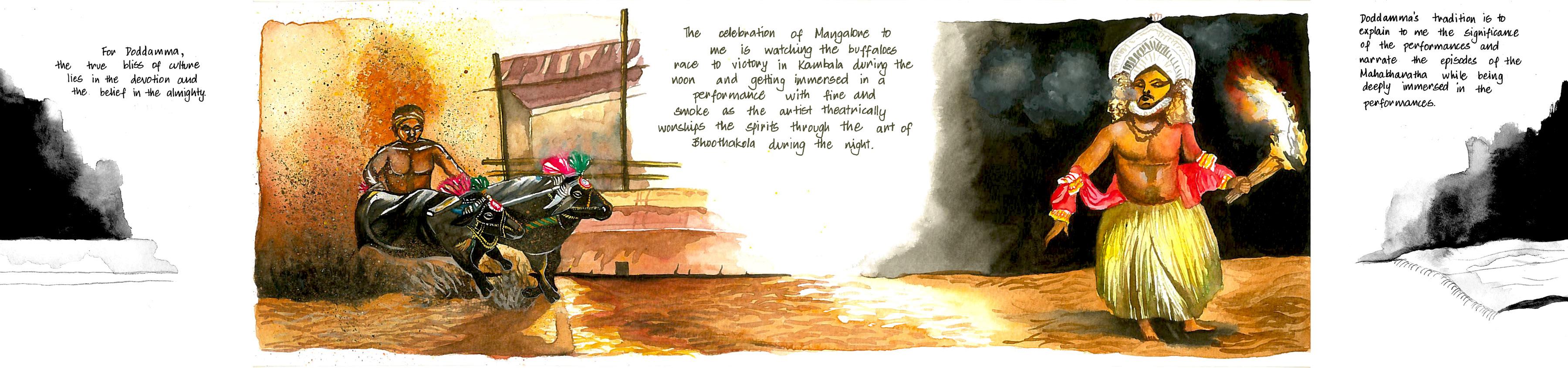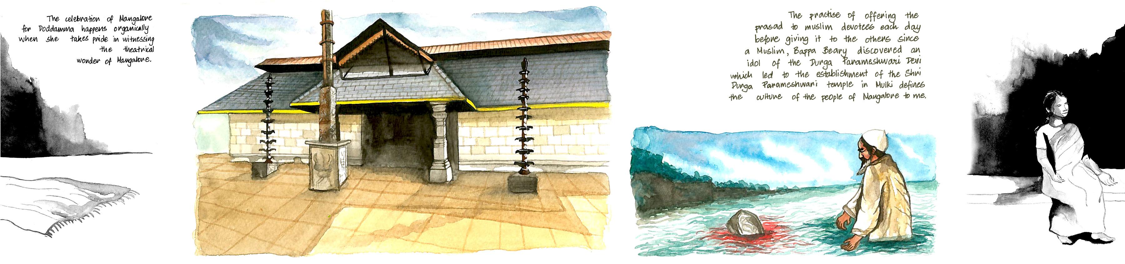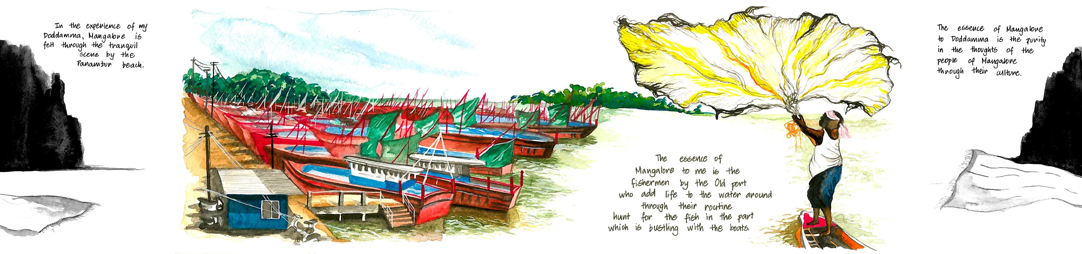Having grown up in Bangalore for the entirety of my life, the city of Mangalore is one that fascinates me each time experience the place through a visit. It has been a city that I often visit with my Doddamma (aunt) when I crave for a break from the mundane, busy life of Bangalore. Being a second year undergraduate student of architecture, the cityscape with its beautiful landscape setting is something that fascinates me perpetually. Just thinking about the times spent there with Doddamma by experiencing the beautiful landscapes, heritage buildings, temples, theatre and food brings a feeling of warmth and joy. The choice of narrating a story that I know about this place through my aunt was one that was taken merely because of the joy brought to me by my experiences with the place and its people. The curiosity of seeing how I would relive all those memories through a story was something that fascinated me and made me take up the Mangalore city to narrate.