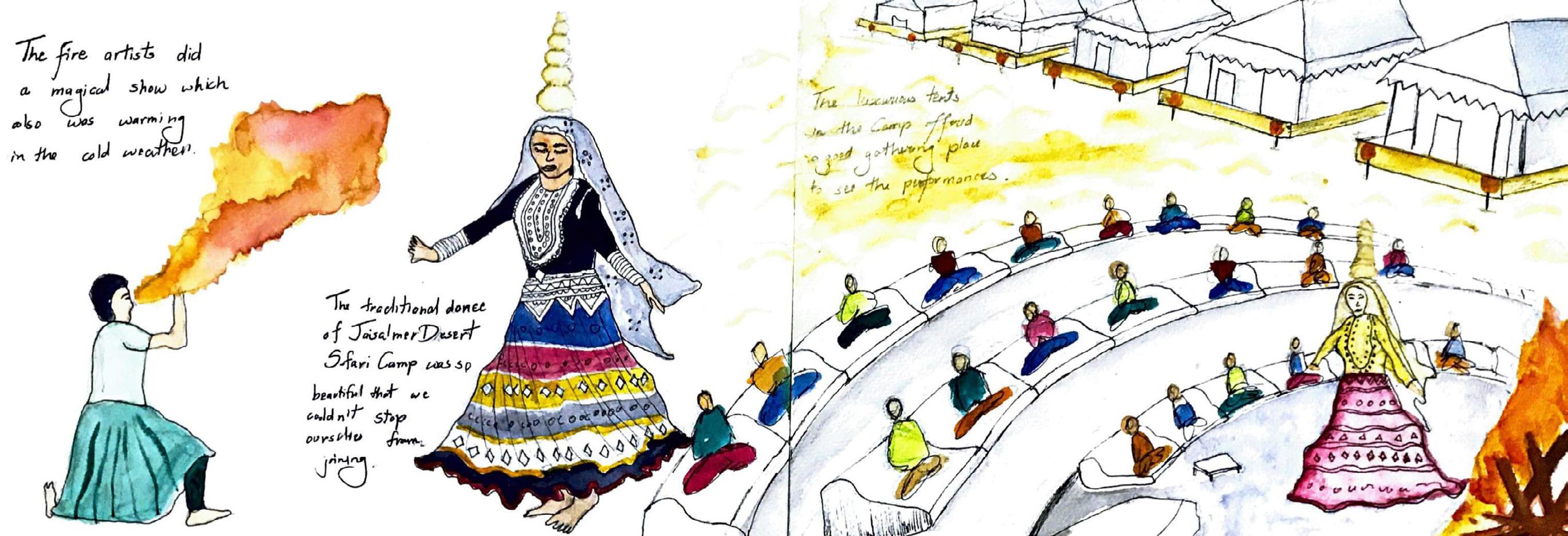 The journey began from the Thar desert of Jaisalmer, where we stayed in the tents of Jaisalmer. The tents had a special circular area for performers to perform where couldn’t stop myself from looking at the colorful dresses the artists wore with their beautiful dances. The camels helped us to visit the Thar desert in an adventurous way. As we moved to the city, we stayed in Rajwada Fort where in the Fort one could find the beauty and tradition of Jaisalmer from the entrance itself. Eating the spicy traditional Rajasthani food in Jaisalmer with the whole view of the city and the fort was an experience in itself.
