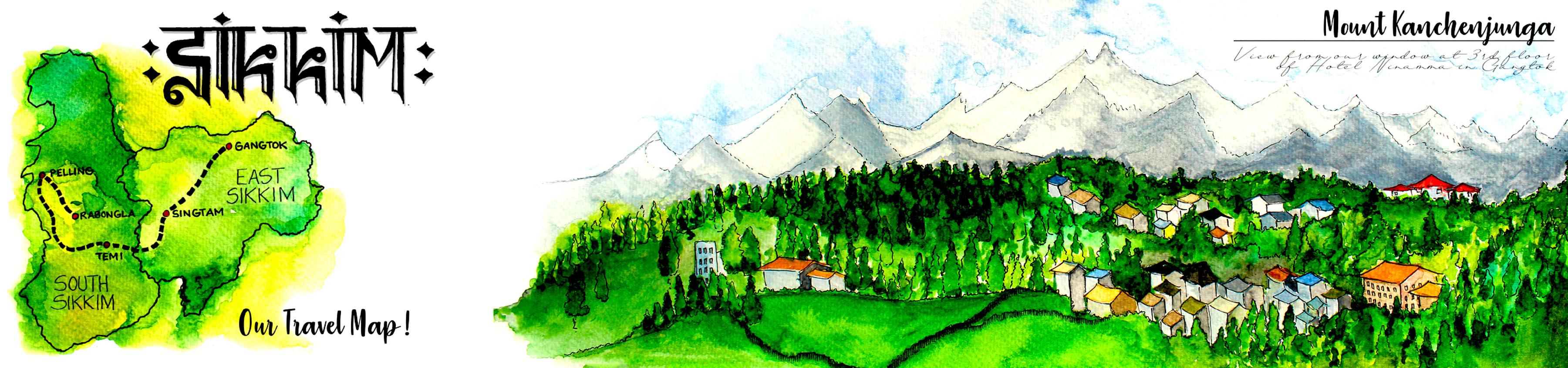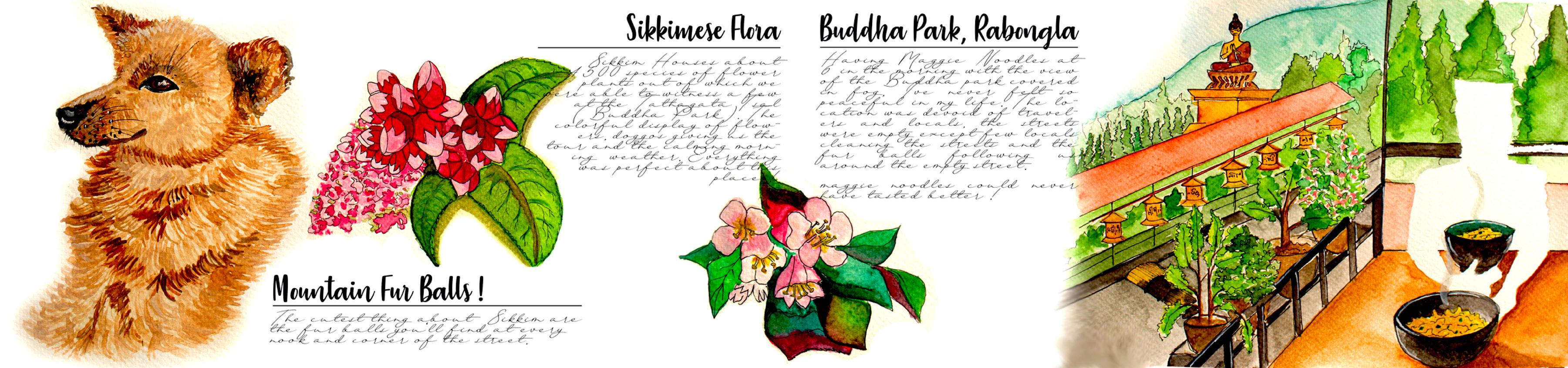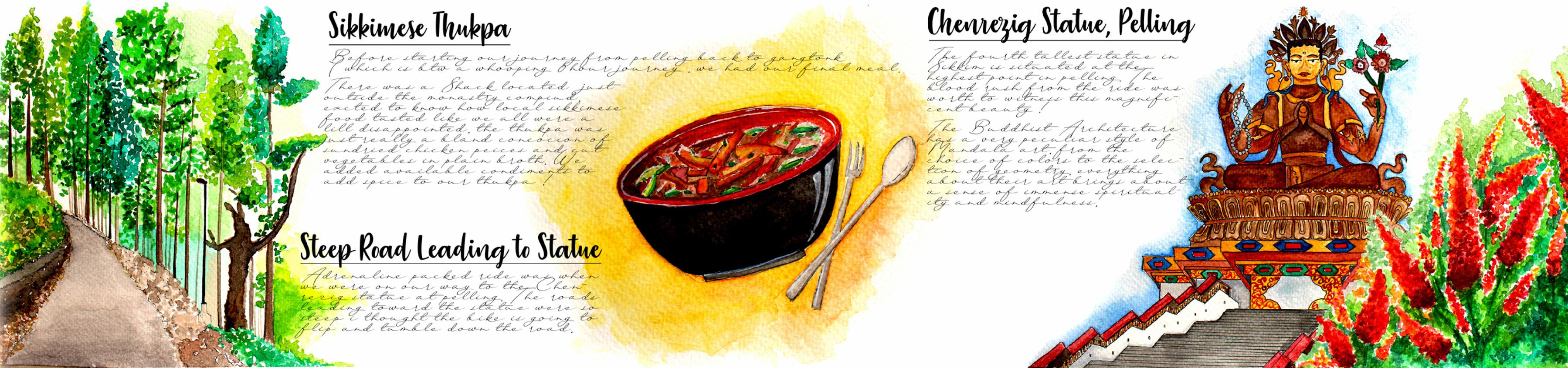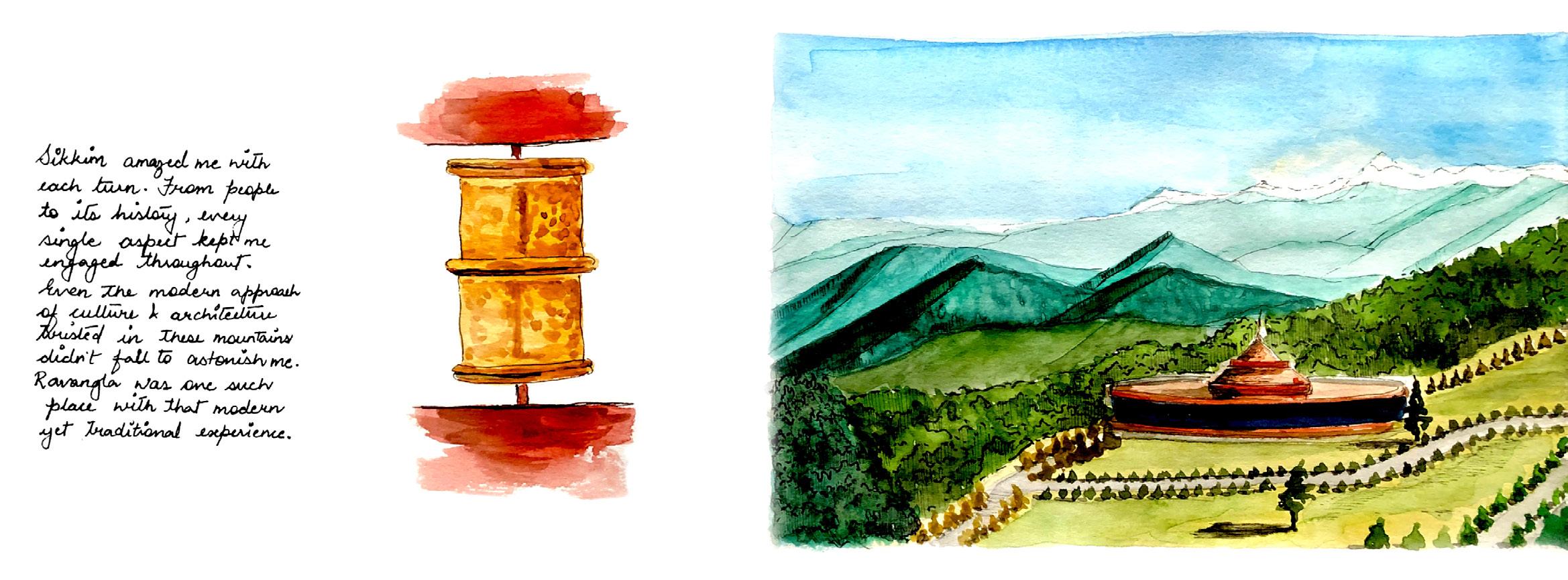 The last trip could manage in 2020 before the pandemic hit and the normal routine crashed into a volcano ! wanted to travel Sikkim so that I could pet yaks, experience the north eastern culture and of course get a glimpse of the third height mount in the world, the great Kanchenjunga ! The reason I decided to document this journey as a visual travel journal because probably this trip might be the only trip where I felt I’ve risked my life just to experience the sheer adrenaline rush which probably people get when they travel on a bike. experienced nature like never before, we rode through extreme weather conditions and dangerous terrains. We didn’t just see nature while the ride, we experienced it, felt it, lived it ! And a lot couldn’t be photo documented, hence this summer school gave me an opportunity to re create those experiences through visual journal.