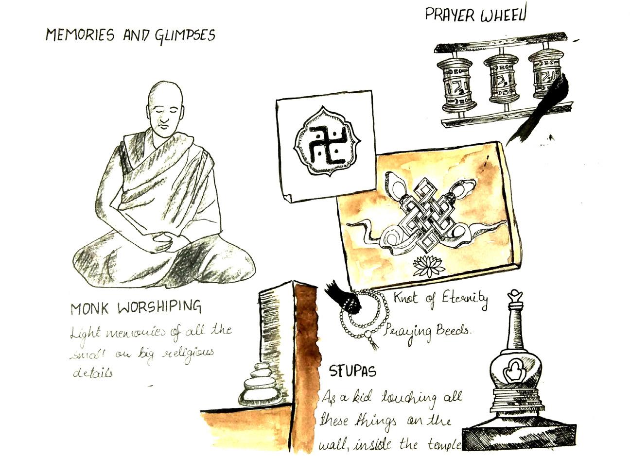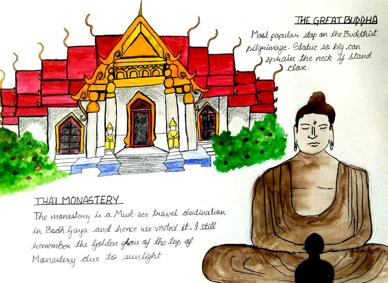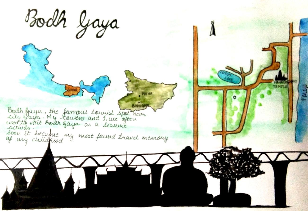 The journal is based on my trip to Bodhgaya during my childhood. Bodh Gaya is a city in the state of Bihar, Mostly known for its tourist attraction. The legends says that it was the place where Gautam Budha gained found the truth of life and the preaching of Buddhism started from this place. It is one of my most cherished memories at my grandma’s place. visited Bodh Gaya many times and this journal is the combination of all those small glimpses combined, I associate them with great joy, happiness and summer vacations.