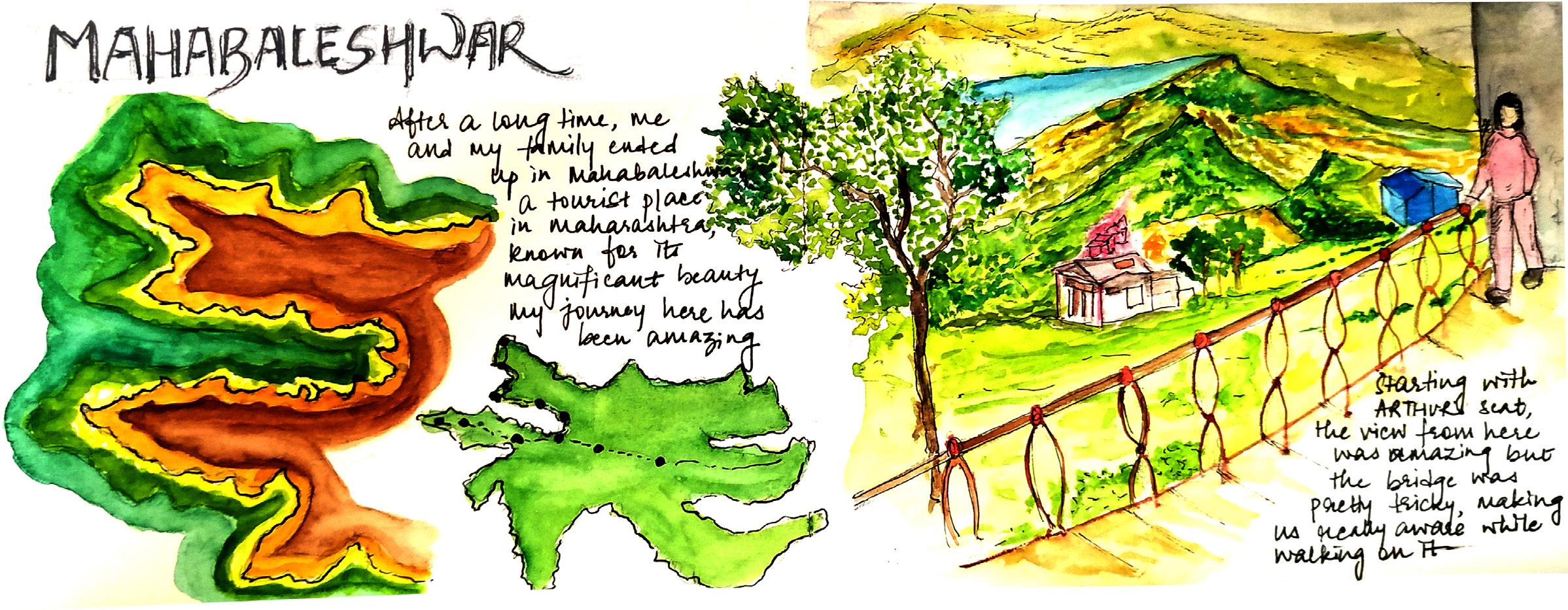 The following series of sketches depict my personal experience of different places in Mahabaleshwar, where I visited with my family a few years ago. It has some amazing viewpoints, looking at which no one ever feels like leaving the place. Every point has its own significance and beauty to announce. Mahabaleshwar is located along the Sahyadri range of Western Ghats. It is located on mountains of this range, which run along the western coast of India. It receives water from Krishna River, which also flows through other states like Karnataka, Telangana and Andhra Pradesh. I, being a tourist, never saw that place with any other lens, but gradually after growing up, looking at those places and recreating those memories through sketches has given me a whole new perspective to look upon.