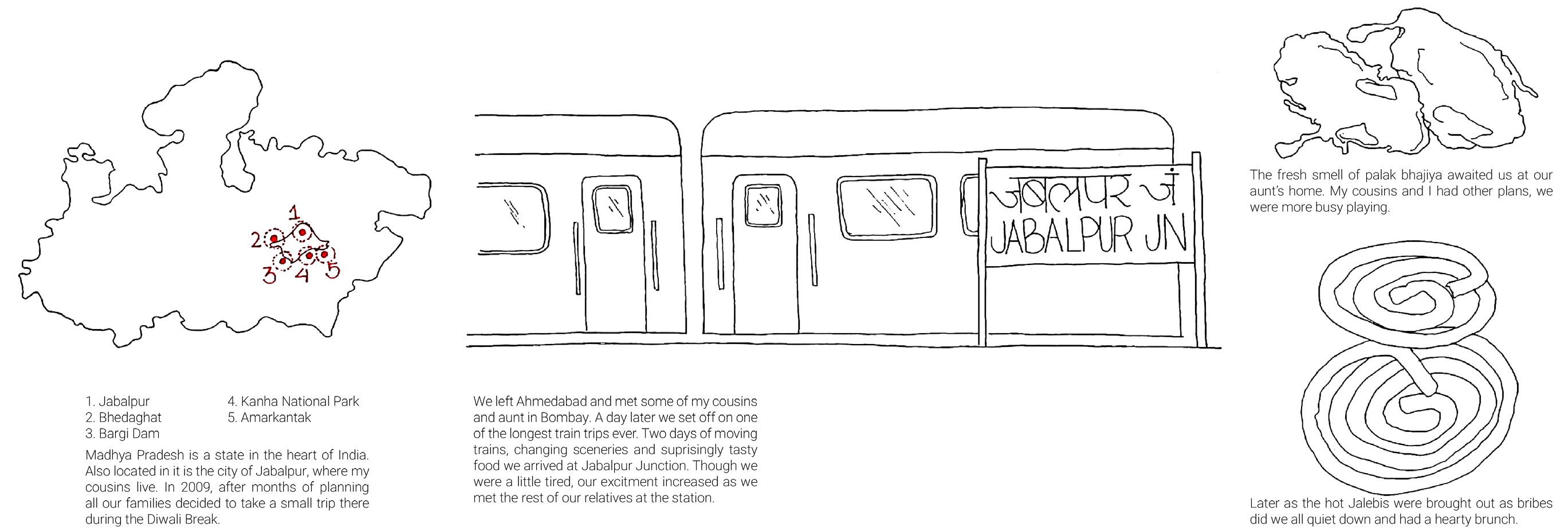 In 2009, our family took a trip to the city of Jabalpur, Madhya Pradesh with the rest of our cousins at their place, during the diwali break. It was a two day train trip before we finally reached our destination. Once we reached Jabalpur, we forgot about the extra homework or the long journey we just had. All everyone wanted was to continue with the spirit of the vacation and go exploring. We visited various places starting with Bhedhaghat where there were beautiful local crafts made from the naturally available marble. Next we visited the Bargi Dam and had a cruise ride to see it up close. Then came the Kanha National park where we saw herds of deers and tigers in their natural habitat. We took a break from our continuous expeditions for the Diwali Pooja and the celebrations as well as the customary bursting of the fireworks. Last place we visited was the temples at Amarkantak, covered in beautiful carvings and telling many mythological stories. We spent the last couple of days wrapping up the trip and playing by the trees at my cousin’s home before finally leaving for home.