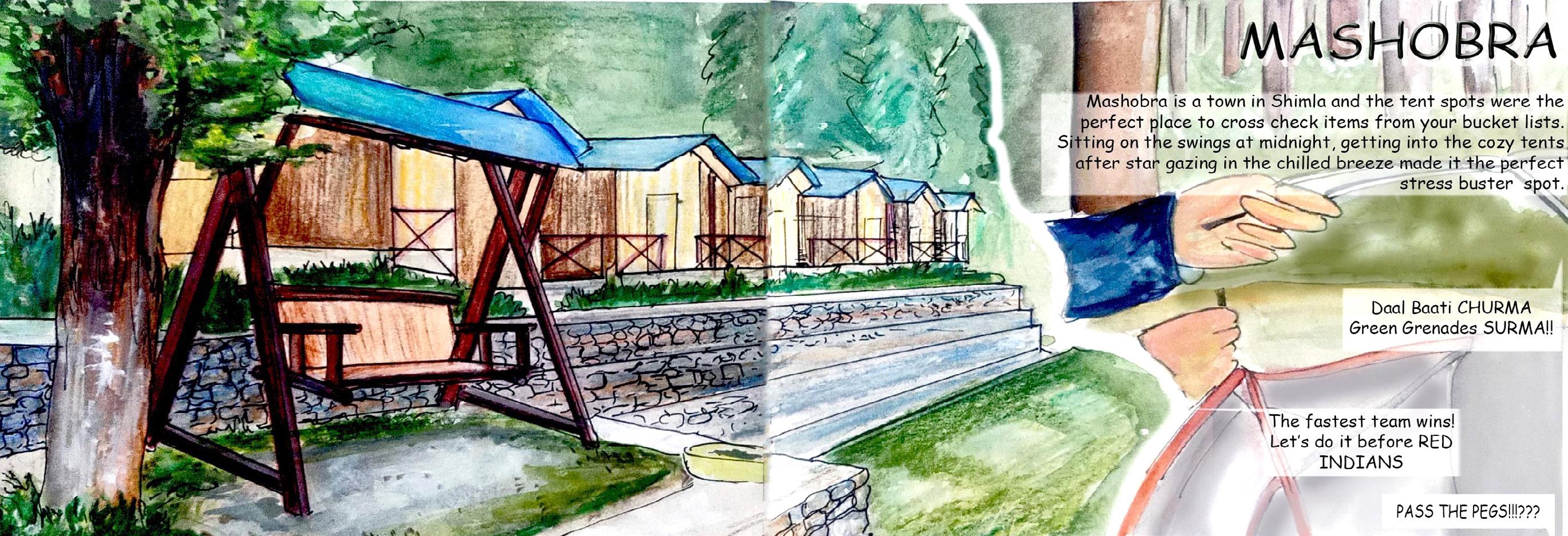 Mashobra is a small town in Himachal Pradesh, which is known for its picturesque splendors, vast flora and fauna, rich culture and for its ability to quench the thirst of adventure seeking travellers. Away from the hustle and bustle of cities, tourists enjoy boating, trekking and shopping at this scenic beauty’s paradise. The narrative is a personal documentation of a school trip to Mashobra where my experiences range from the stunning views and camping- to adventurous treks and exploration of the local streets.