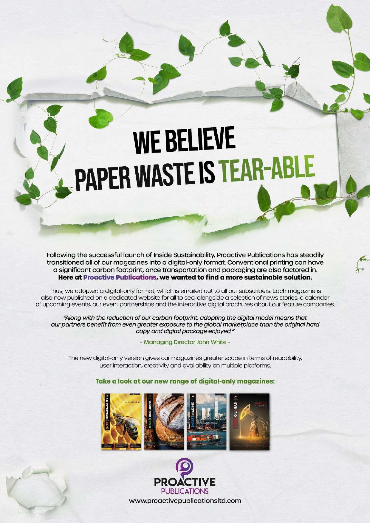 Hello, and welcome to the latest edition of Inside Sustainability. As I read through the various company profiles in this magazine, I am struck by the shared sense of hope for building a better world. This concept is captured in the short poem ‘Hope’ by Italian poet Emanuel Carnevali: Tomorrow will be beautiful, For tomorrow comes out of the lake.