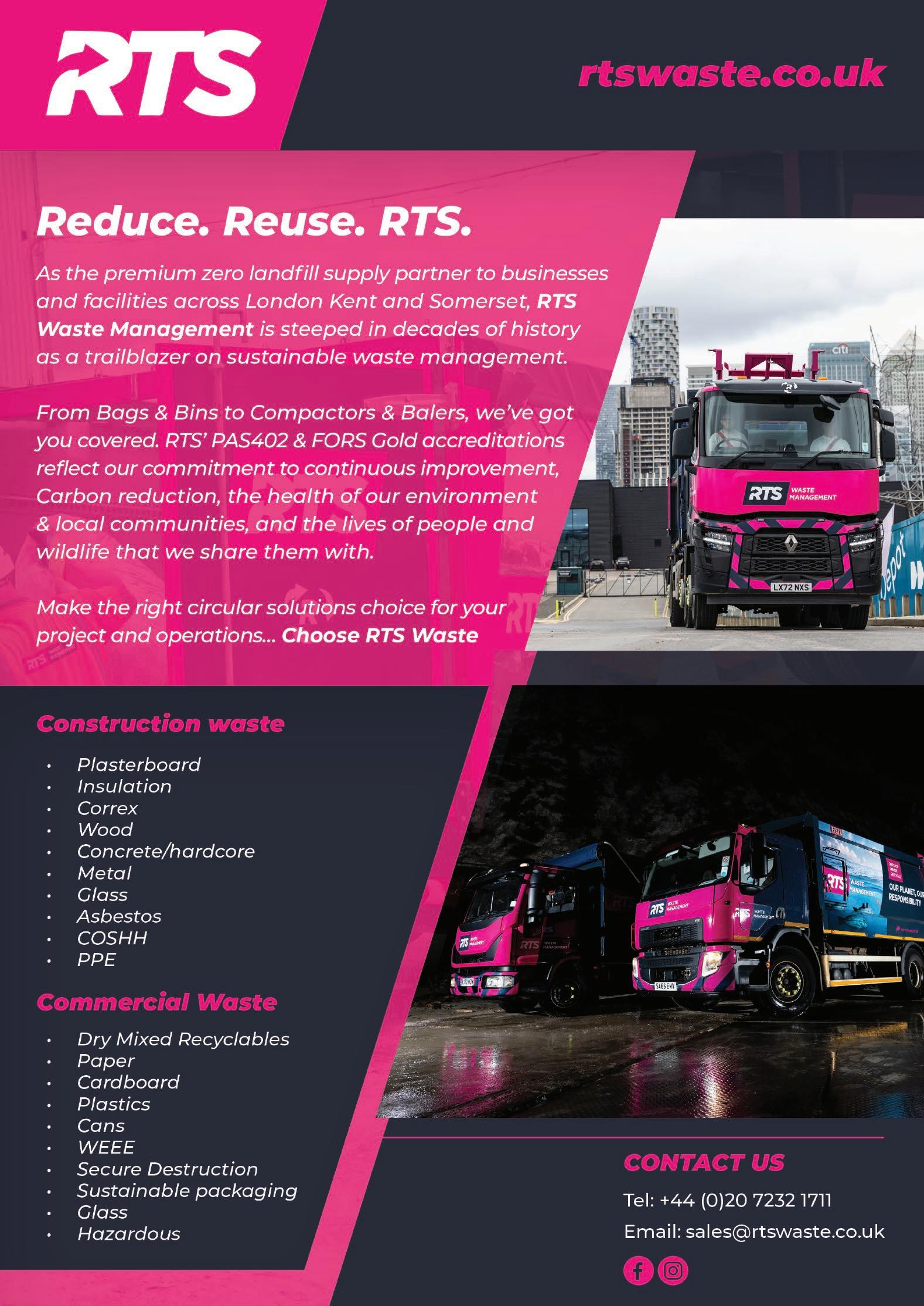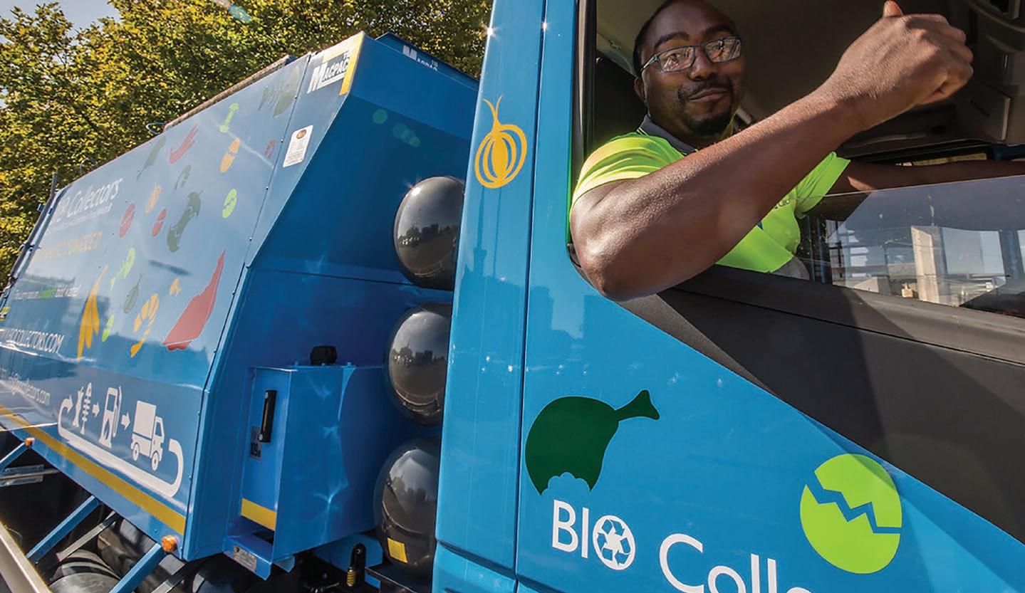 processing. Once it arrives at the facility, the waste is then assessed for any contaminants and sent for separation once given the ‘all clear’. The waste is then ground to a paste before entering the company’s digestion tanks where it is broken down into various resources, including methane. This is then purified and utilised to power the company’s eco-friendly vehicle fleet and its plant.