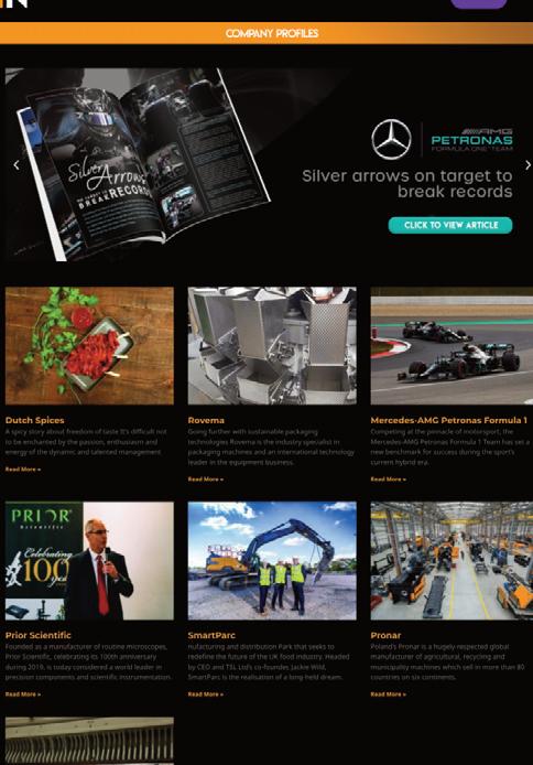 • Prime website placement at the top of the ‘Company Profiles’ section of the magazine web page.