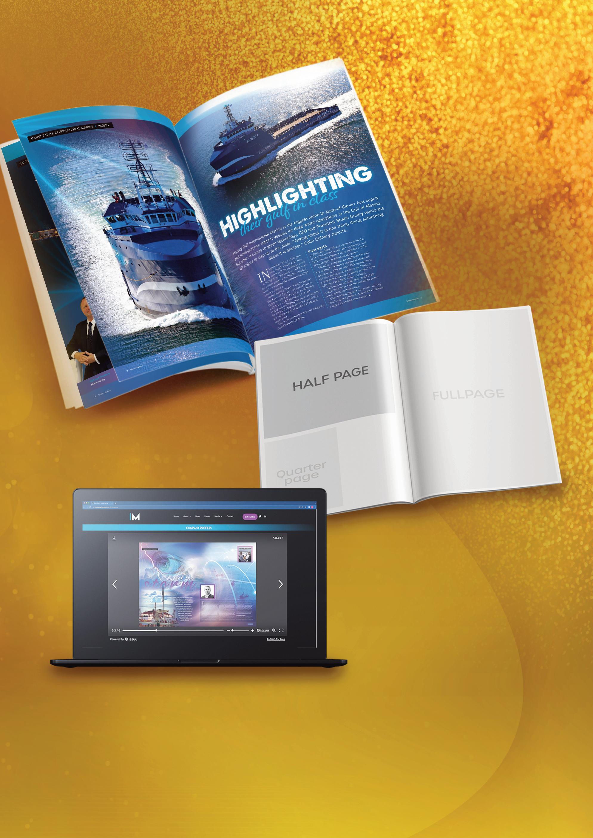 • Prime website placement at the top of the ‘Company Profiles’ section of the magazine web page.