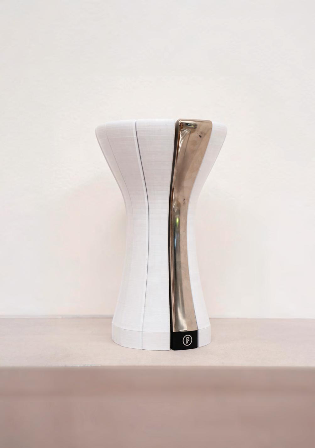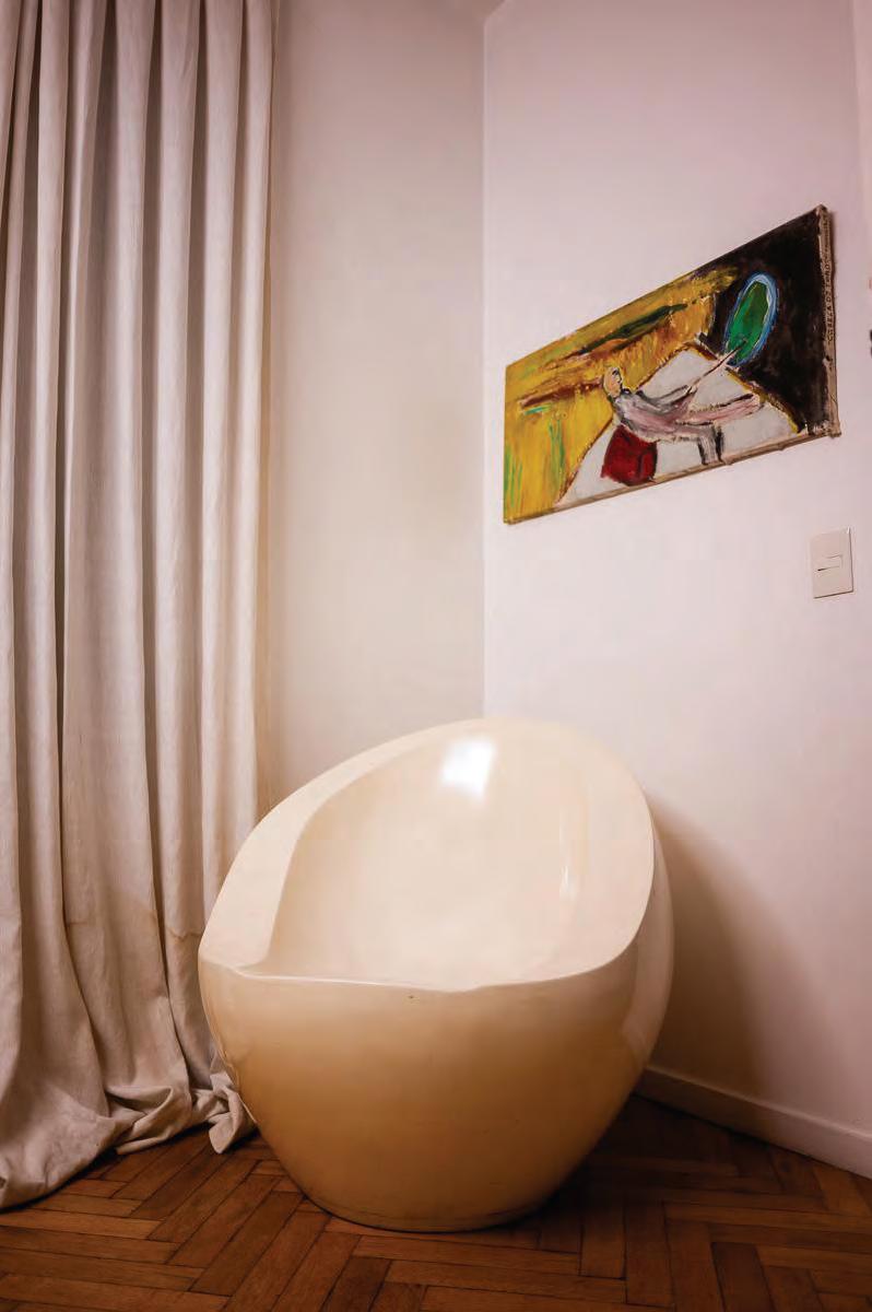 La silla Rambla reinterpreta la icónica pieza de mimbre de Mar del Plata y rinde un doble homenaje: a los abuelos cesteros de Paz y al abuelo fotógrafo de Santiago, que retrataba veranos familiares. La Rambla es la postal de las vacaciones de millones de argentinos. La silla, entonces, se transformó en un símbolo, un objeto casi de culto. Desde sus propias vivencias y saberes, el estudio la reversionó con tecnología 3D y sistema textil antimanchas. Cuenta con estructura metálica y el asiento está tapizado en pana. Las cuatro curvas en forma de arcos que se entrecruzan componen el respaldo y apoyabrazos. Con formas orgánicas y una paleta de colores que invoca amaneceres y atardeceres frente al mar, la silla también es un homenaje urbano. El paseo de la Rambla surgió en 1888 y en 1941 fue rediseñado por Alejandro Bustillo, pionero de la arquitectura nacional.