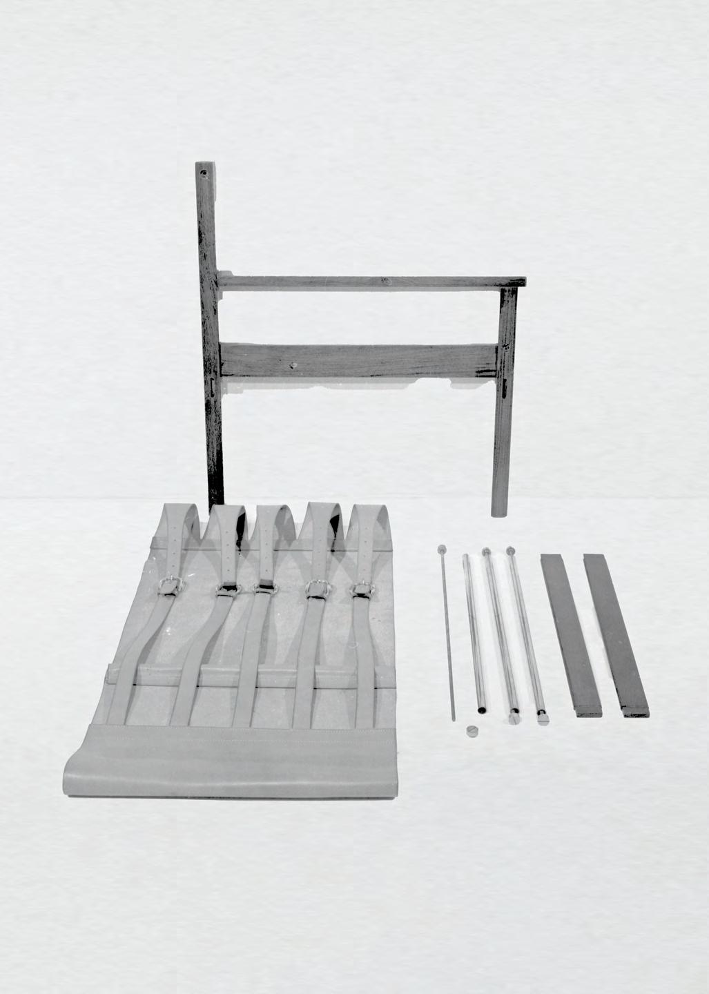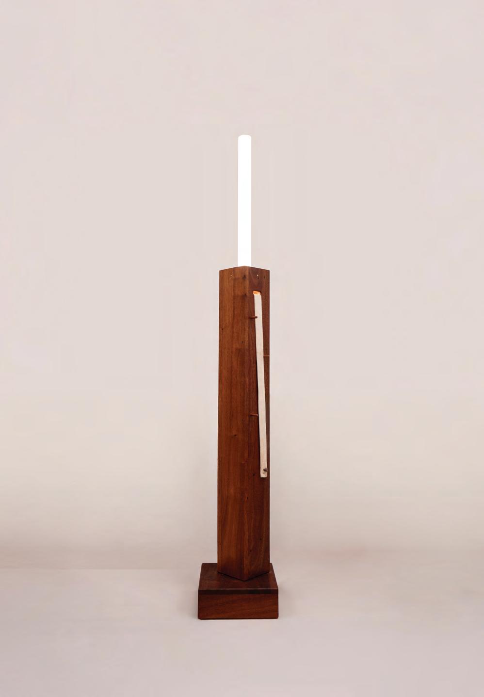 El Trono Americano está compuesto por una repetición de piezas oblongas de madera maciza, con vértices profundamente redondeados, que al unirse forman un volumen sólido. La pieza contiene despuntes de Eucalipto Grandis (el despunte es la porción terminal de la rama o del tronco y en general se utiliza en industrias de celulosa o bioenergía). La lámpara Cancharana, se proyectó originalmente para la ópera Bastián y Bastiana, de Mozart, ejecutada por la Ópera Periférica en el año 2020. A falta de presupuesto para dimerizar 10 tubos, se generaron unos pistones internos activados por cintas. En la escena los intérpretes modificaban la cantidad de luz. Luego fueron parte de la colección muebles de Campaña, en donde se estudiaron las resoluciones constructivas que asumen los muebles hechos por constructores y constructoras en su día a día.