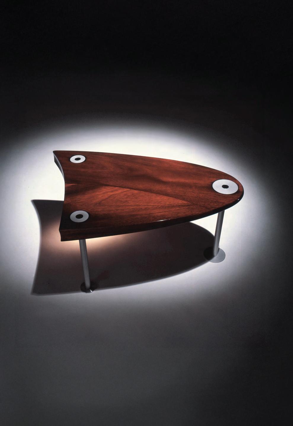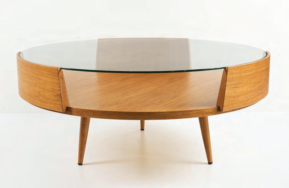 Ronda , alude a un círculo y a la forma elegida para materializar esta mesa baja que no tiene cabecera y que reúne sin jerarquías. La madera de placa es eficiente para la producción seriada, mientras que el enchapado requiere, a su vez, conservar el proceso artesanal de laqueado, una combinación que habla de futuro y de tradiciones. La máxima estabilidad se genera con la elección de sus tres puntos de apoyo; y su funcionalidad está materializada en sus dos planos de uso, uno de apoyo y otro de exhibición.