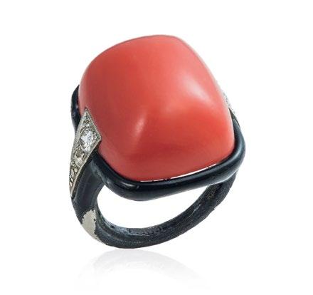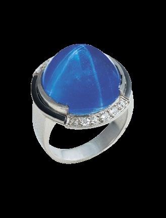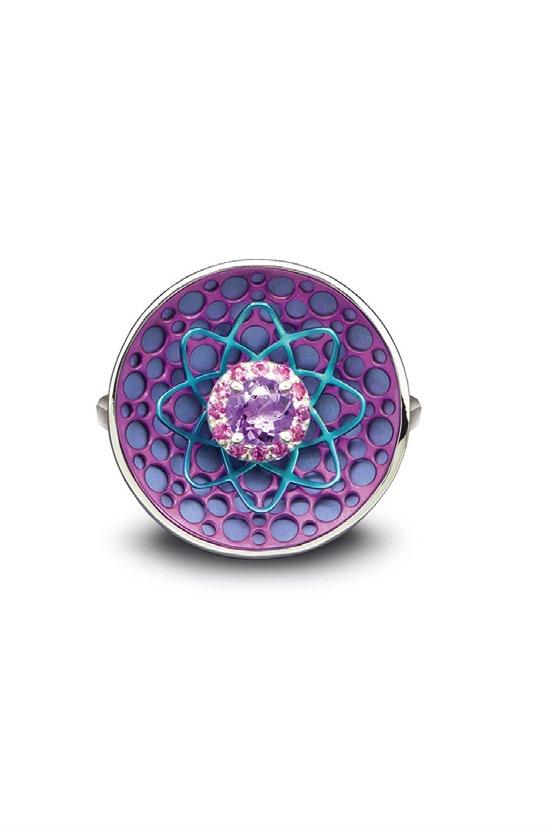 Ring in anodized titanium with diamonds and rubies. Titanium collection. GIOVANNI FERRARIS. Jumpsuit: GIANFRANCO MARRAUDINO.