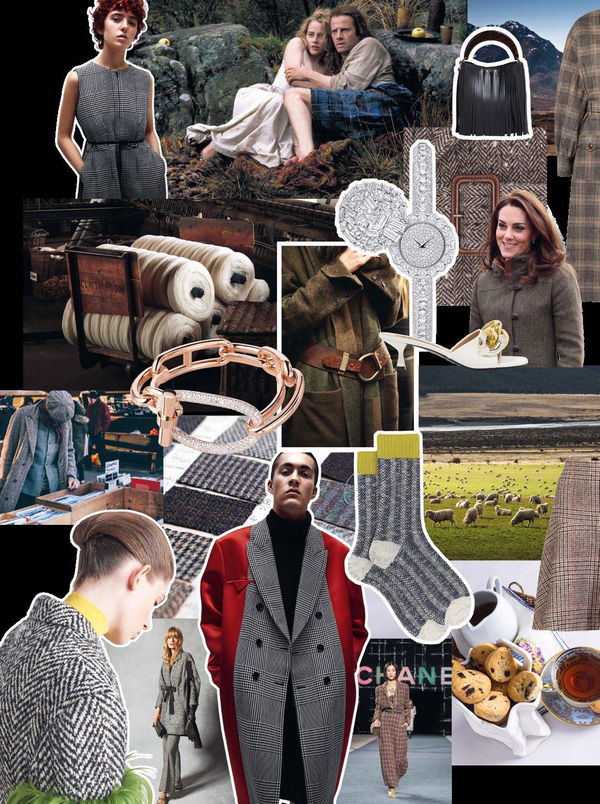 A rough fabric with a gentle soul. Oversized pied de poule coats, bold checked jackets and diamond cascades on elegant jewellery. Tweed once again takes the spotlight on damp, foggy winter days warmed by the aristocratic fabric par excellence.